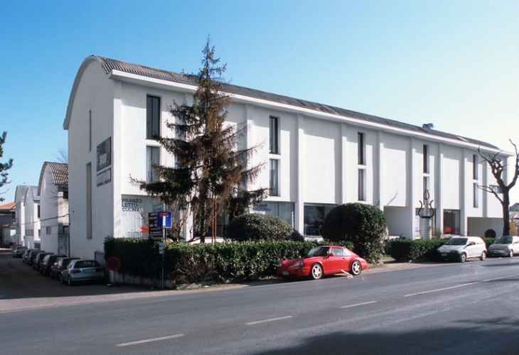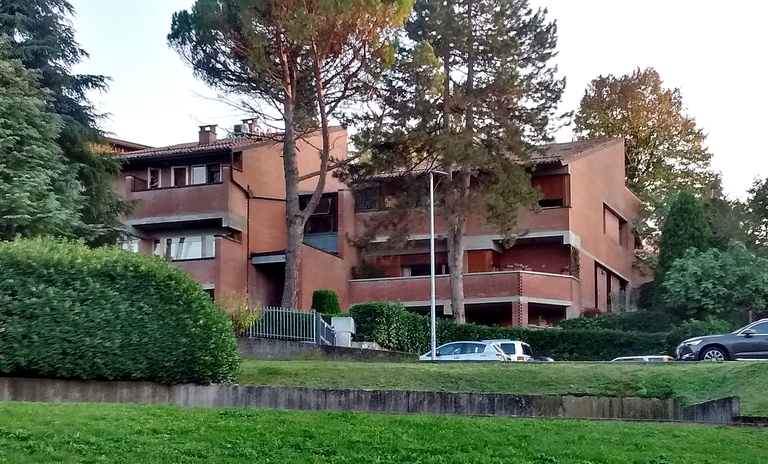 Edifici per appartamenti a un piano, si sviluppano in lunghezza, seguendo la strada in salita che li costeggia. Realizzati in pietra a vista, sono concepiti con ingressi e garage a piano terra. I balconi corrono a nastro lungo tutta la facciata.
