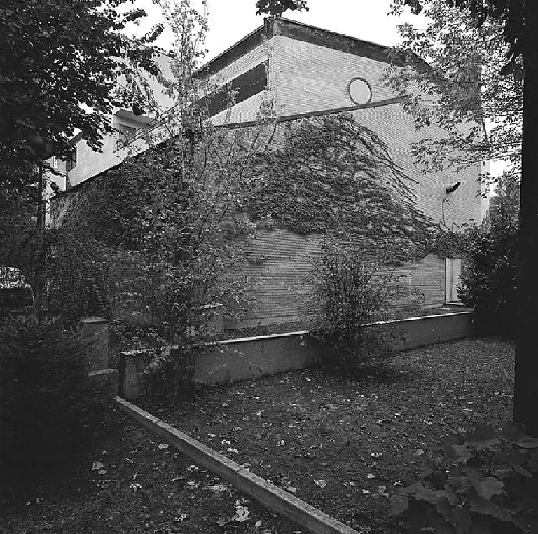 La sala d’attesa si apre invece verso la piazza antistante all'ingresso del centro civico con una grande vetrata scorrevole. A ovest il fronte vetrato è protetto dalla strada da grigliati metallici che fungono da schermi solari.