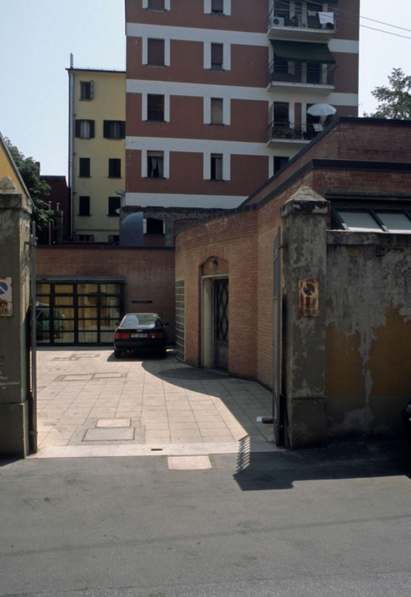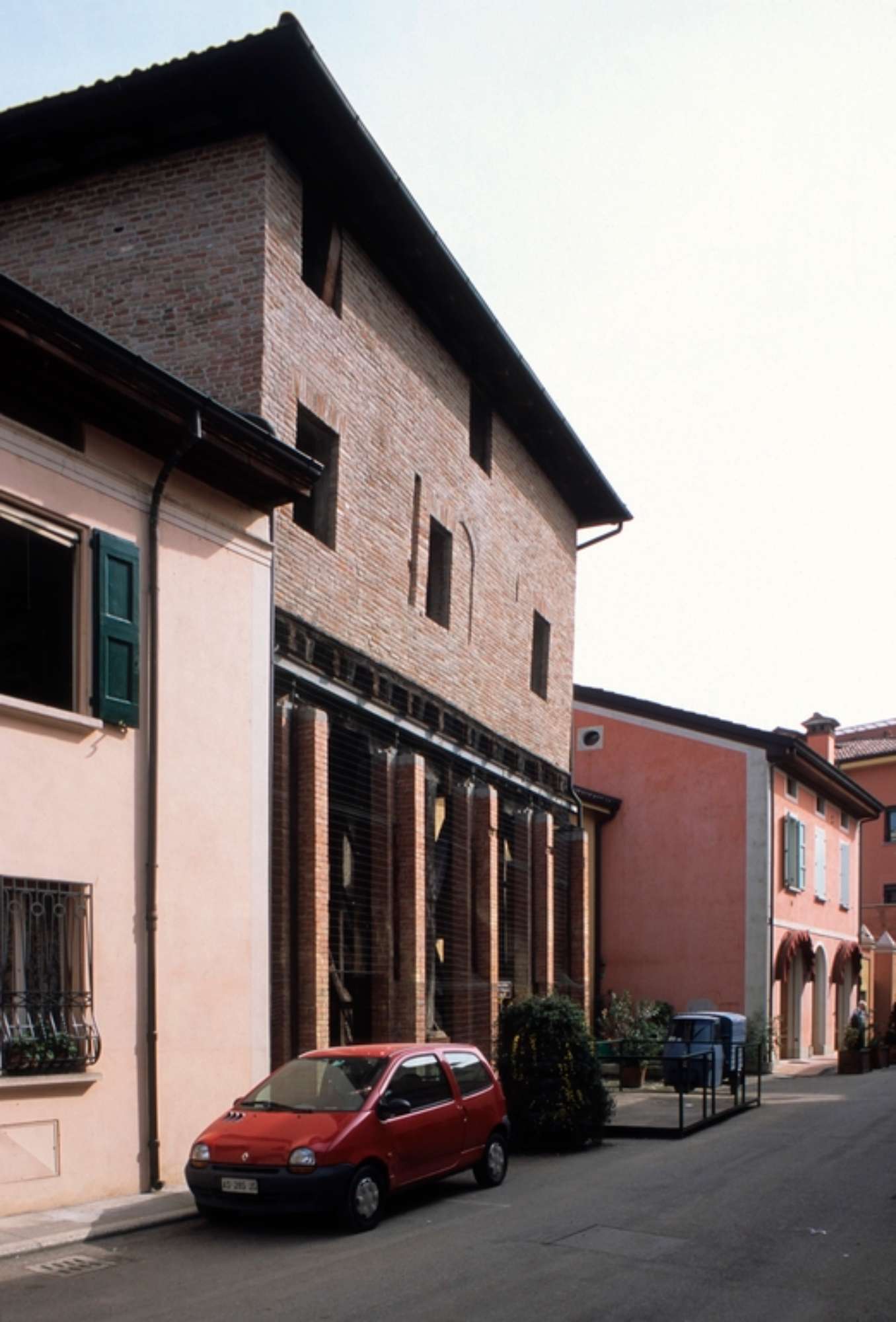 Il complesso è situato nel Centro Storico di San Giovanni in Persiceto e comprende la ristrutturazione di un fabbricato esistente in angolo alle due strade, destinato inoltre alla realizzazione di 14 alloggi posti al primo e secondo piano e uffici ambulatoriali posti al piano terreno. La nuova costruzione del centro per accoglienza diurna handicappati ha accesso diretto dalla strada e si sviluppa all’interno di un’area a giardino. Comprende una vasta aula per giochi, intrattenimenti, etc, cucinette e servizi, nonché stanze per riposo pomeridiano dei ragazzi. Elementi costruttivi e architettonici particolari segnano, caso per caso, la topografia del complesso, ma questa attenta strategia non smorza l’invenzione plastica, ora compressa ora dilatata secondo il carattere del recinto, completamente esplosa nello spazio interno.
