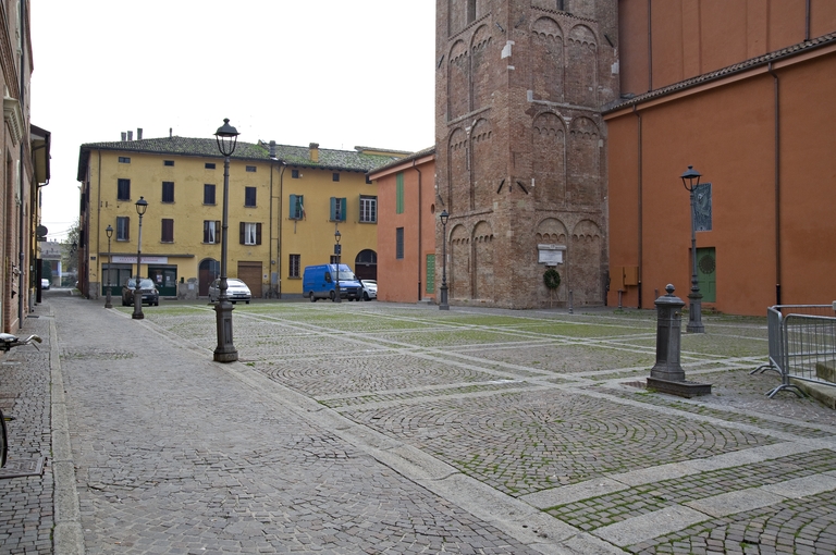 Lavori di pavimentazione, realizzazione della fontana monumentale e lastricatura delle strade adiacenti. Riquadrata con fasce di granito grigio dell’Elba, di massello, la Piazza dei Martiri è suddivisa in comparti campiti di cubetti di porfido. Due corselli laterali consentono il transito dei mezzi da vie Terragli a Levante verso il centro. Sul fronte della via Due Agosto 1980, è collocata la fontana di pietra vicentina con gradoni della stessa pietra. Gli adiacenti vicoli Cattani, Melega e Sassoli sono lastricati in quadroni prefabbricati di cemento con cunetta centrale e fasce laterali in cubetti di porfido.