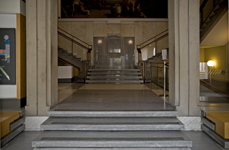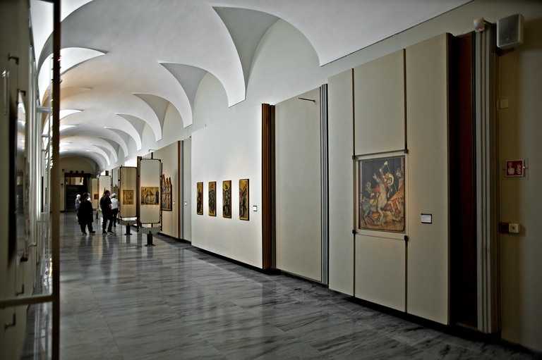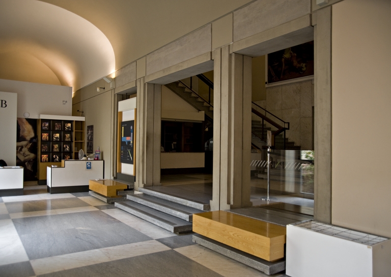 A partire dal 1953 il soprintendente Cesare Gnudi avvia un complessivo programma di sistemazione della sede della Pinacoteca Nazionale di Bologna, all’interno dell’ex Convento di Sant’Ignazio. Il progetto di ristrutturazione e di riallestimento viene affidato a Leone Pancaldi, che lo proseguirà fino al 1973, a parziale compimento dell’originario obiettivo. Prende così avvio un durevole sodalizio tra Gnudi e l’architetto, destinato ad incidere concretamente e in profondità nella stagione culturale cittadina per oltre un ventennio. Sia per la dimensione cospicua dell’intervento, sia per mantenere l’apertura almeno parziale dell’esposizione, i lavori vengono suddivisi in più lotti; una prima fase riguarda le sezioni del Trecento e del Quattrocento (1955-60), seguita da quella dedicata alla Sala del Rinascimento (1960-64). L’intervento conclusivo realizzato da Pancaldi interessa le sezioni del Barocco, con la grande sala ottagonale attrezzata per la didattica (1967-73). La coeva e comune attività organizzativa e progettuale dedicata alle Biennali di Arte Antica, consente a Gnudi e a Pancaldi di sviluppare e sperimentare vari aspetti tecnici e metodologici nell’ambito espositivo, mantenendo un dialogo aperto su vari temi sospesi tra permanenza e temporaneità.