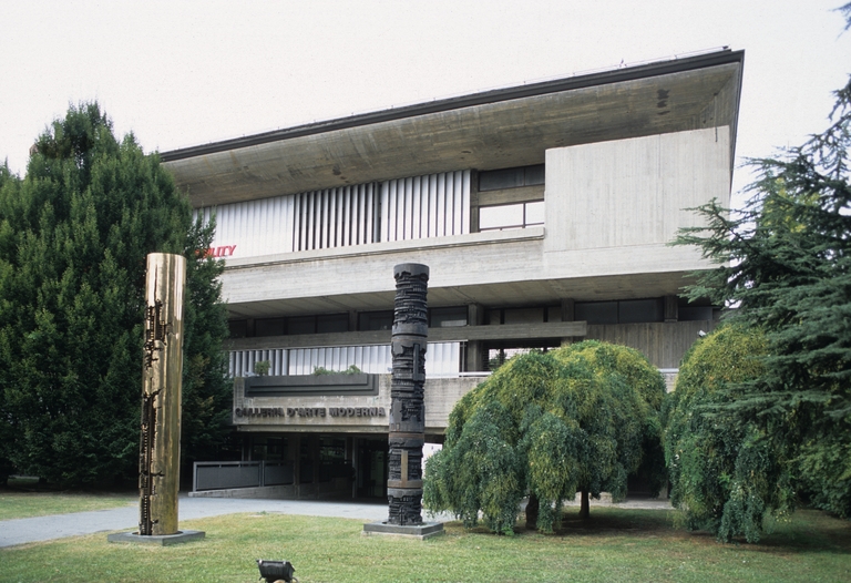 Questo edificio ha rappresentato un importante momento evolutivo della vita intellettuale della città, che vede trasferire il patrimonio e le attività ospitate fin dal 1936 presso Villa delle Rose in una struttura appositamente concepita e ambiziosamente rivolta ad una sperimentazione dei modi espositivi più consoni alle opere della modernità. La vasta corte centrale, a tutta altezza, mette in risalto la falda di copertura, sagomata in modo da riflettere al meglio la luce naturale che penetra attraverso il grande lucernario inclinato. Lo spazio interno è concepito per mantenere una fluida comunicazione distributiva tra i vari settori espositivi e fra i diversi piani, garantendo un contatto visivo che facilita l’orientamento. Grandi setti murari, staccati da terra e dai soffitti, inglobano mascherandoli i pilastri in cemento armato della struttura, mentre i vani perimetrali sono attrezzati alla sommità con finestre a nastro, per dare spazio alle opere lungo le pareti. Ampi e panoramici spazi di riposo e le balconate esterne accolgono la sosta dei visitatori, confermando una sensibilità che Pancaldi ha sempre espresso nei suoi allestimenti museali ed espositivi.