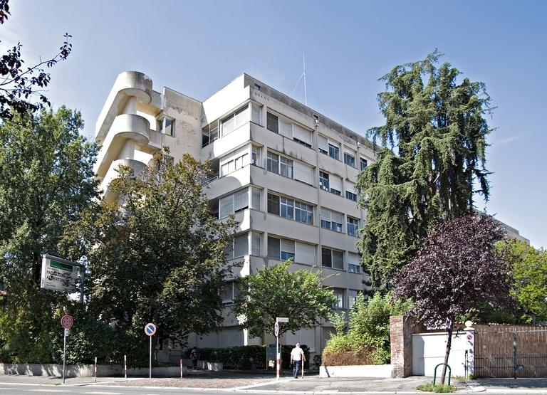Il progetto è dell'arch. Enzo Zacchiroli (1919-2010), assieme a Giorgio Conato ed è ispirato chiaramente al Sanatorio di Paimio di Alvar Aalto.