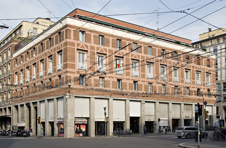 Nel 1949 è bandito un concorso nazionale per la sistemazione del lato di levante di via Roma (poi Marconi), corrispondente ad una parte dell'antico Borgo delle Casse. Comprende anche la progettazione dell'edificio di testata, opposto al Palazzo del Gas.