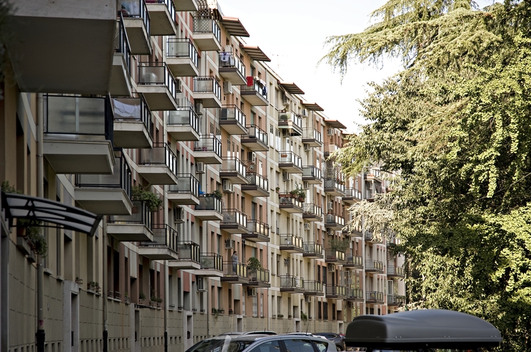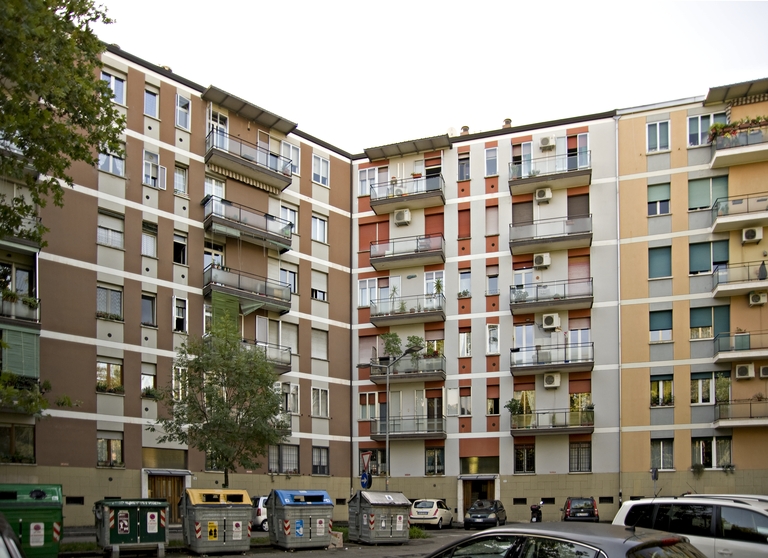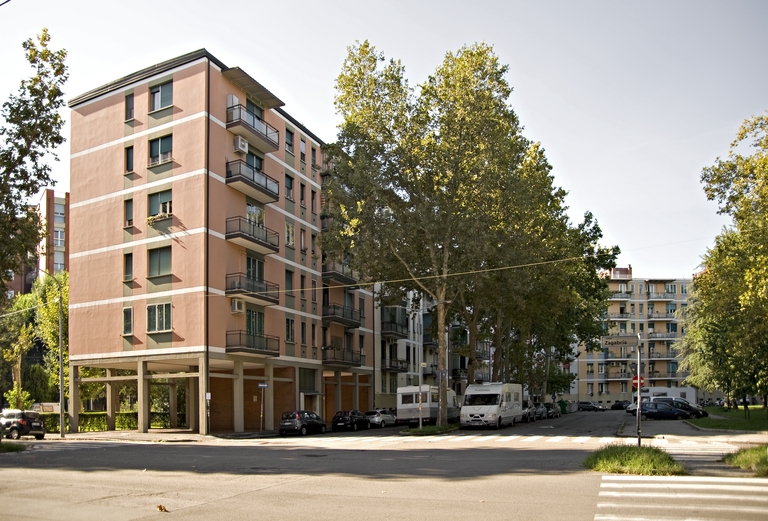La stagione INA Casa nasce nel 1949 in virtù della Legge 43, con cui si approva il “Progetto di legge per incrementare l’occupazione operaia, agevolando la costruzione di case per i lavora-tori “, fortemente voluta dall’allora Ministro del Lavoro Amintore Fanfani. Il Piano Incremento Occupazione Operaia Case per Lavoratori, detto comunemente Piano Fanfani, viene attuato in due settenni consecutivi ed individua nell’edilizia un ruolo fondamentale per la ricostruzione del Paese, assicurando nello stesso tempo l’impiego di grandi masse operaie. Così, mentre si soddisfa la forte domanda abitativa scaturita durante e dopo il periodo bellico appena trascorso, si fa fronte al grave problema della disoccupazione. Lo stesso Fanfani riconosce nel settore edilizio un efficace propulsore dell’intero sistema economico, in grado inoltre di asorbire la mano d’opera non qualificata nel passaggio dall’agricoltura all’industria.L’INA Casa è costituito presso INA, l’Istituto Nazionale delle Assicurazioni, ed è composto da due organi fondamentali: il Comitato di attuazione, con poteri deliberativi e a contatto diretto con il Ministro del Lavoro; la Gestione INA Casa, che sovrintende gli aspetti tecnici e della progettazione. Al termine del secondo settennio, nel 1963, la Gestione INA Casa viene soppressa, ed è istituita la GESCAL, Gestione case per lavoratori; il patrimonio INA Casa viene liquidato e confluisce agli Istituti Autonomi Case Popolari competenti per territorio. In questo esempio di edifici popolari, le unità residenziali, di rilevante mole ed altezza, consolidano i netti confini dell’area (via San Donato, rilevato ferroviario, tangenziale), definendo un impianto spaziale finora sostanzialmente inedito, che racchiude e protegge aree verdi pubbliche assai ampie e i servizi scolastici, anticipando schemi tipici dei futuri quartieri PEEP.