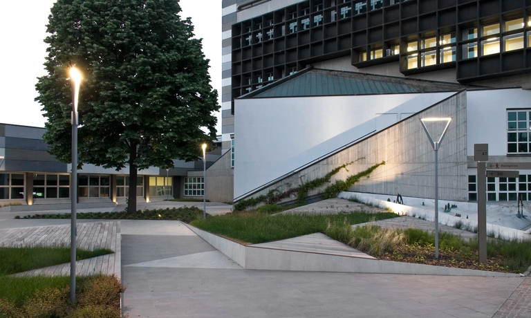 Edificato a metà degli anni ’80 dalla Cassa di Risparmio di Bologna, il complesso porta la firma dell’architetto e maestro del design Vico Magistretti. I volumi di cui si compone sono un affascinante aggregato di geometrie solide in cemento armato che dialogano fra di loro in un delicato equilibrio di forme. Nel 2016 la Generali Real Estate SGR S.p.A. ha creduto nelle potenzialità di quest’area, investendo in un intervento di radicale trasformazione e valorizzazione dell’intero polo e scrivendo un nuovo capitolo nella storia di questo complesso.