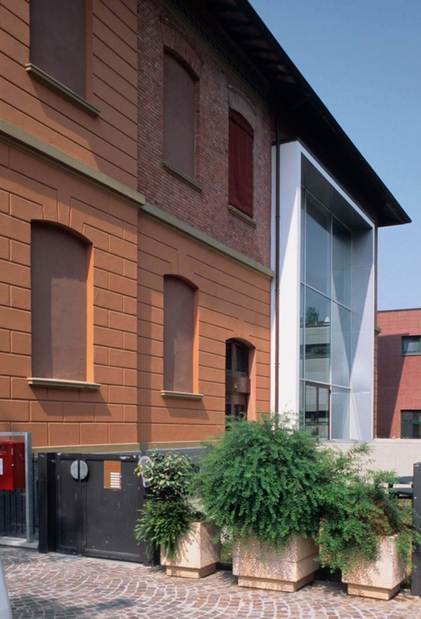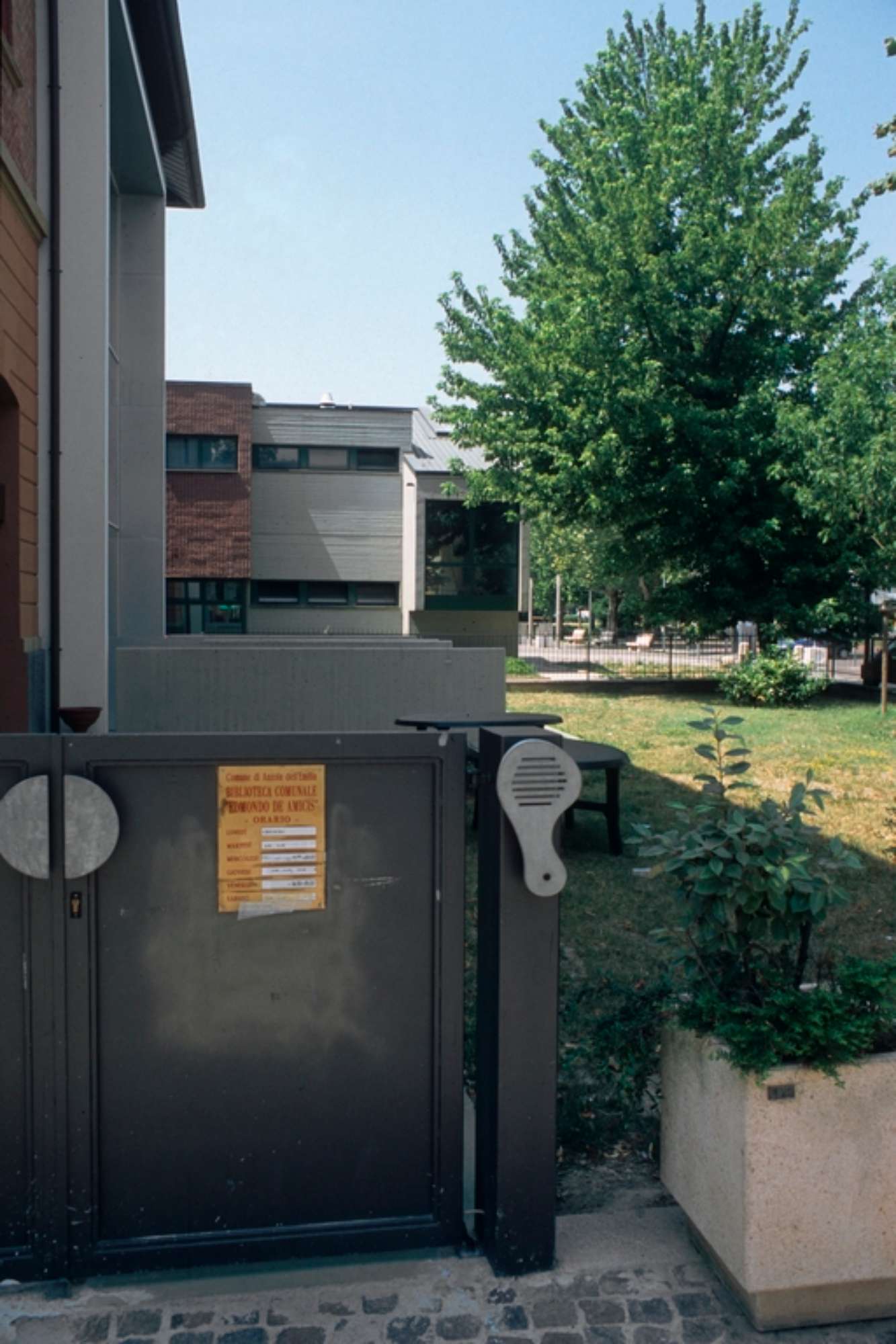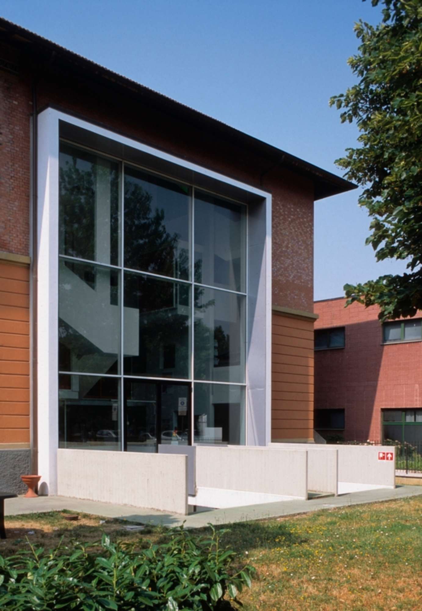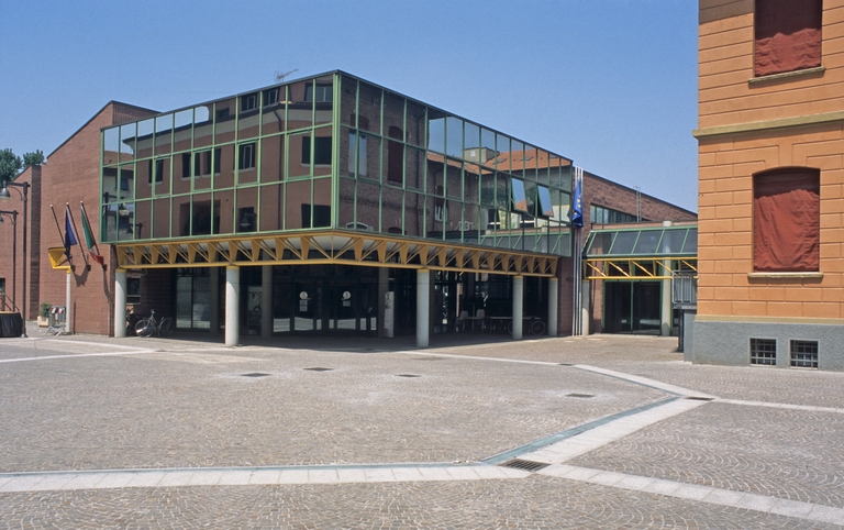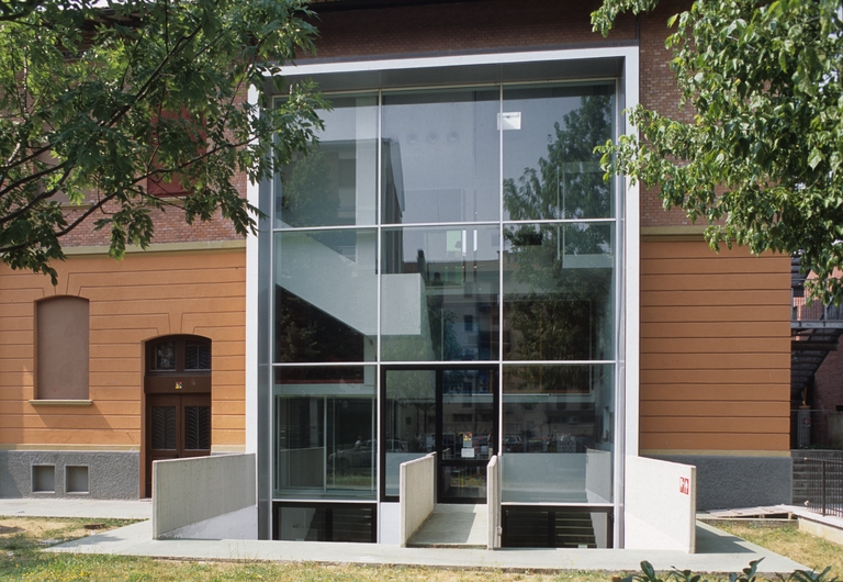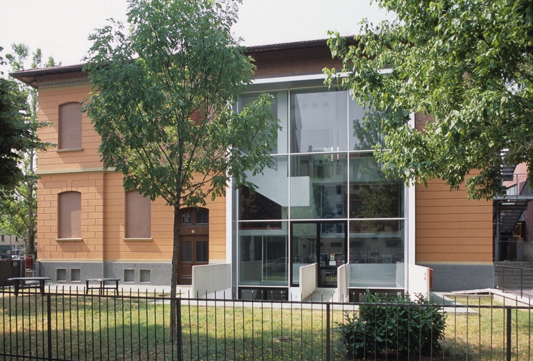 Furono queste le premesse che spinsero il comune d’Anzola ad invitare l’architetto Italo Rota nel 1998 a presentare una proposta per il riutilizzo di una struttura scolastica degli anni 20 destinata ad ospitare la nuova biblioteca civica. Il progetto, pur non avendo vincoli di mantenimento della struttura esistente, si indirizzò verso un intervento diversificato; una struttura interna nuova a nord ottenuta per scavo del volume esistente e un restauro conservativo per la restante parte dell’edificio.