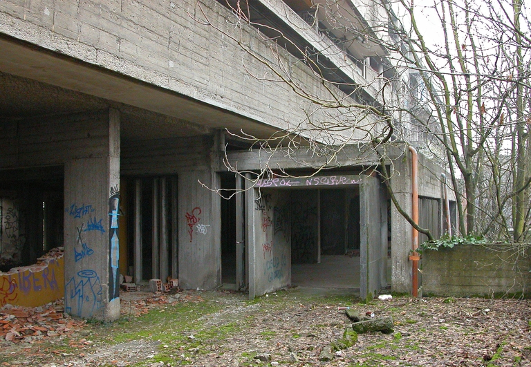 Il progetto, che ancora oggi viene studiato nelle facoltà di architettura, porta la firma prestigiosa degli architetti Gresleri, Parmeggiani e Daini ed è ritenuto buon esempio di una scuola ispirata a Le Corbusier, riuscita nel difficile compito di non rendere così invadente un parallelepipedo in cemento armato issato sulla sommità della collina (tutelata) che fronteggia il Colle di San Luca. A mascherarne l’impatto sul paesaggio un buon aiuto l’hanno fornito gli alberi cresciuti spontanei tutt’intorno e a ridosso dello scheletro in cemento armato lungo più di cento metri ed alto otto piani. Doveva essere il seminario dei Padri passionisti, religiosi che vivono nel vicino convento, che al termine dell’impresa si ritrovarono nel boom di una crisi di vocazioni che non è mai finita. Iniziarono così i decenni segnati dalle vendite (prima l’Oikos, poi la Grandi Lavori, quindi una società romana ed ora Coop Costruzioni), con i relativi progetti legati ad un centro studi sull’abitare, poi ad un grande albergo che doveva vedere la luce con il Giubileo.