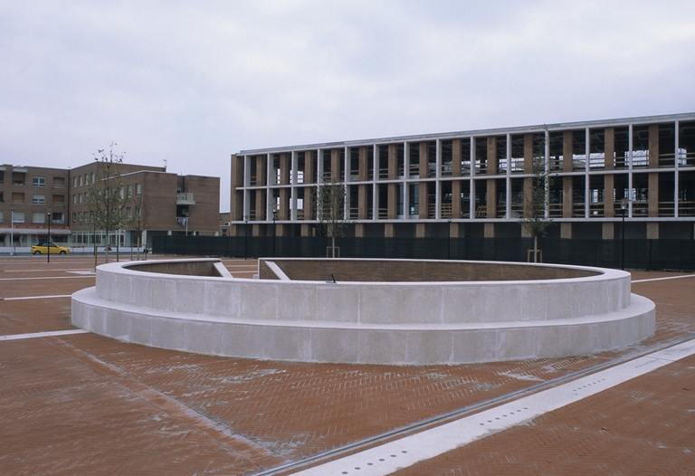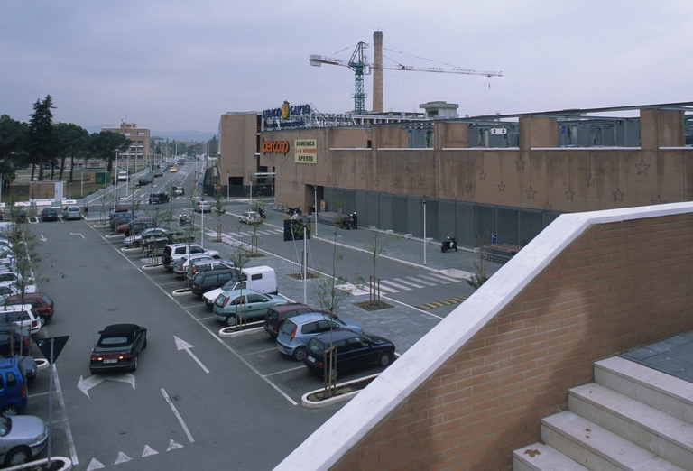 Nella parte superiore si contrappongono ortogonalmente edifici a tre isolati a forma di “H”, che costruiscono così una sequenza di spazi pubblici aperti. Il primo di questa sequenza di edifici è posto ad una quota ribassata e costituisce il collegamento tra la galleria del centro commerciale e il parcheggio pubblico, a sua volta collegato ortogonalmente allo spazio centrale della seconda sequenza di piazze, dal lato opposto dell’asse centrale dell’area. La copertura del centro commerciale ospita delle residenze su due livelli.