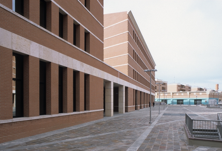 L’area ex Orsi-Mangelli, è parte integrante dell’ampio programma di recupero delle aree dismesse di prima industrializzazione che dalla fine degli anni ‘90 caratterizza il territorio del comune di Forlì. La sua collocazione tra la stazione ferroviaria e il centro storico, la sua importante dimensione (13 ha), le dinamiche della sua riprogettazione e i problemi affrontati per la sua attuazione ne fanno un caso emblematico dei processi di rigenerazione urbana sviluppati in Italia negli ultimi 15 anni. Il processo di dismissione dell’insediamento industriale, iniziato nel 1984 e concluso nel 1993, vede da subito l’affiancamento tra soggetto privato (Fortex Sidac Srl) proprietario della maggior parte della superficie e soggetti pubblici che rilevano parte delle aree (Comune, Poste Italiane, Romagna Acque) o sono attuatori di specifici interventi (Iacp Forlì, ora Acer). Nonostante i cambiamenti subiti dal progetto in corso d’opera per le modifiche alle destinazioni d’uso, per l’insorgere dei problemi di bonifica e per i cambiamenti di mercato, questa forte base di soggetti e il mix di funzioni ha consentito al programma di rigenerazione di mantenere una buona coerenza rispetto agli obiettivi iniziali senza modificare in modo significativo l’assetto urbanistico. Affidato agli Studi Natalini e Prococi Engineering, il Piano attuativo per l’ex Orsi-Mangelli, in attuazione di quanto previsto dagli strumenti urbanistici generali, persegue i seguenti obiettivi: trasformare il “vuoto urbano” della fabbrica in un nuovo quartiere con destinazioni miste, integrate tra loro; realizzare vasti spazi pedonalizzati, ciclabili e a verde; connettere il nuovo quartiere al tessuto urbano circostante; curare la qualità realizzativa attraverso un forte controllo sul linguaggio degli elementi architettonici edilizi e dello spazio pubblico. Partito dalla necessità di intervenire su un’area industriale nata nel 1926 e densificata per successive addizioni fino a coprire quasi interamente la superficie territoriale, il progetto riduce la superficie edificata al 50% del totale ricavando ampi spazi per un parco urbano (27.000 mq), lo spazio pubblico pedonale (20.000 mq) e i parcheggi. La volontà era quella di creare un “effetto città”. ’Elemento portante del nuovo quartiere è il grande viale alberato che lo attraversa in direzione est-ovest biforcandosi a “Y” verso il Viale della Libertà (stazione e prima periferia) e a “T” verso Viale Manzoni (centro storico) definendo due snodi fondamentali. In quello a “T”, nel cui centro viene a trovarsi la ciminiera conservata, nasce una grande piazza circolare che, insieme al parco a sud del viale, ordina lo spazio pubblico. A nord del viale sono collocate le zone per il commercio e l’artigianato integrate con le residenze e servite da un ampio parcheggio alberato collocato verso la ferrovia. A sud del viale le residenze affacciano sul parco che, insieme al grande parcheggio interrato (288 posti) costituisce la cerniera tra l’area e il centro storico. La scelta di privilegiare i percorsi pedonali e ciclabili, senza trascurare l’attenzione alla mobilità veicolare (prevalentemente perimetrale all’area), consente al progetto di riconnettere la maglia dei percorsi alla città esistente.