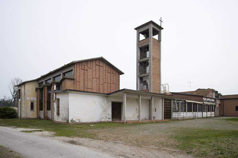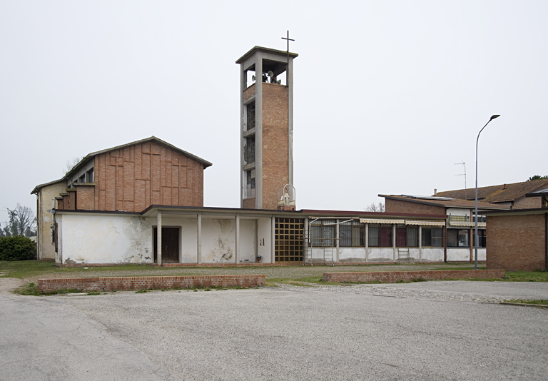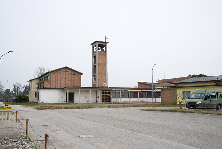 Fulcro del complesso è la piazza poligonale sulla quale si affacciano i diversi edifici, taluni legati agli altri da ampi portici. Le diverse costruzioni, analoghe per linguaggio e materiali – mattone a vista e intonaco – costituiscono un nucleo nel quale i singoli edifici vengono trattati come volumi indipendenti variamente colorati; neppure quello più grande della chiesa sovrasta la sobrietà del complesso; sobrietà, alla quale l’autore tese per le limitazioni economiche che governavano l’operazione, ma anche per esprimere il carattere rurale dell’intervento.