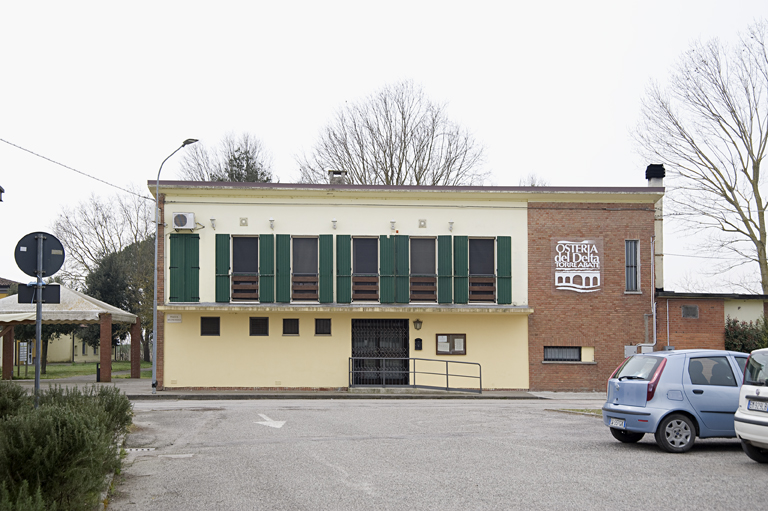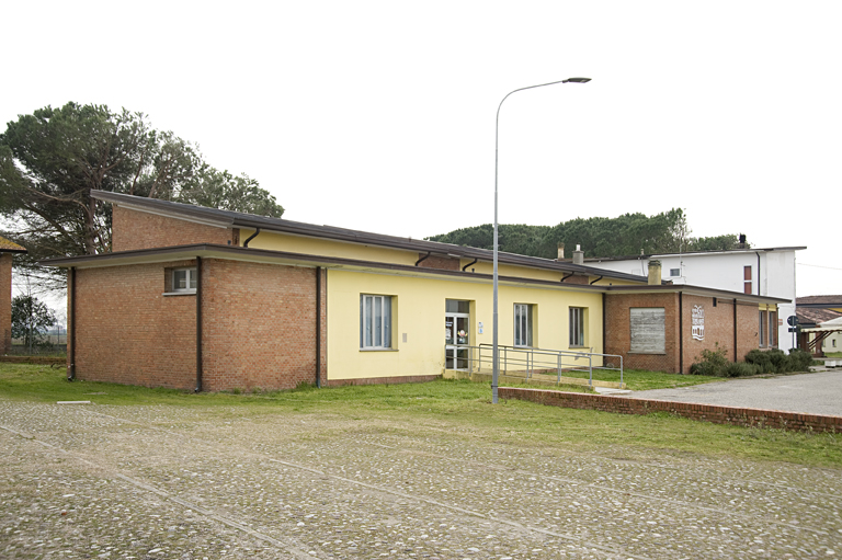 Il borgo di Santa Giustina è il primo dei borghi di servizio che l’Ente per la Colonizzazione del Delta Padano (istituito nel 1951) ha realizzato; costruito nel 1954 su progetto di Pierluigi Giordani (capo ufficio progettazione presso lo stesso Ente), esso assolve la funzione di accentrare i servizi essenziali per una comunità di 2000 persone rappresentate da oltre 300 famiglie estese in un raggio di influenza di 2.5 km di superficie agricola. Il borgo fa parte del progetto di trasformazione fondiaria e colonizzazione dei terreni espropriati nel settore nord-orientale del Tenimento di Mesola e sorge tra Mesola e Goro; la sua realizzazione ebbe un costo di poco superiore ai 75 milioni di lire. Come è stato sottolineato da Lisa Ronchi nel commentare l’intervento su L’architettura. Cronache e storia «il concetto che ha guidato l’Ente e il progettista non è stato quello di recare un “paese”, ma di dare alle case dei contadini, dislocate ciascuna nel suo podere di assegnazione, un accessibile centro di assistenza sociale, economica e religiosa. Non si tratti di paesani che si recano in campagna, ma viceversa di contadini che si recano ogni tanto al paese, pur rimanendo di regola radicati al podere secondo il tradizionale costume delle popolazioni rurali venete. La costruzione del borgo rende razionale l’insediamento sparso».