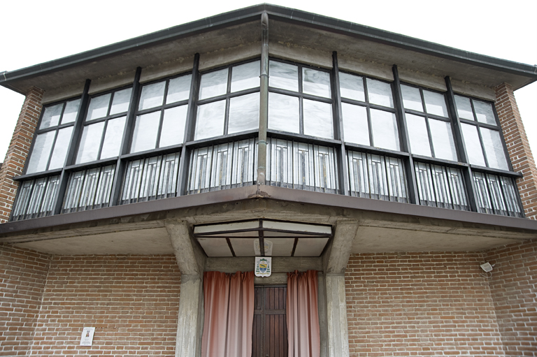 Il borgo rurale di S. Apollinare in Dossetti (1957-58) nel comune di Jolanda di Savoia (Fe) fu realizzato per conto dell’Ente per la Colonizzazione del Delta Padano (istituito nel 1951) seguendo il progetto di Pierluigi Giordani (capo ufficio progettazione presso lo stesso Ente). Il sodalizio tra l’Ente e l’autore, già avviato in occasione della realizzazione del borgo di Santa Giustina (1954), proseguì per tutti gli anni cinquanta e per la prima parte dei sessanta con la realizzazione di altri borghi rurali come quello di Cà Mello (1956-58), Marchiona (1956-57), San Romualdo (1956-57), Oca (1961-62), Corte Cascina (1961-63) e, appunto, quello di S. Apollinare in Dossetti. La costruzione dei borghi rurali era finalizzata a costruire dei centri di servizio per gli abitanti di estese zone agricole: essi non erano perciò dei veri e propri abitati ma dei luoghi dove erano concentrati i servizi essenziali per tale popolazione. Quello di Sant’Apollinare in Dossetti fu realizzato a servizio delle popolazioni assegnatarie insediate nelle Aziende Ambrogio e Magazzeni nonché di parte di quelle delle aziende Jolanda nord e a sud del Canal Bianco nel Delta padano per un totale di circa 1300 persone disposte su 1300 ettari.