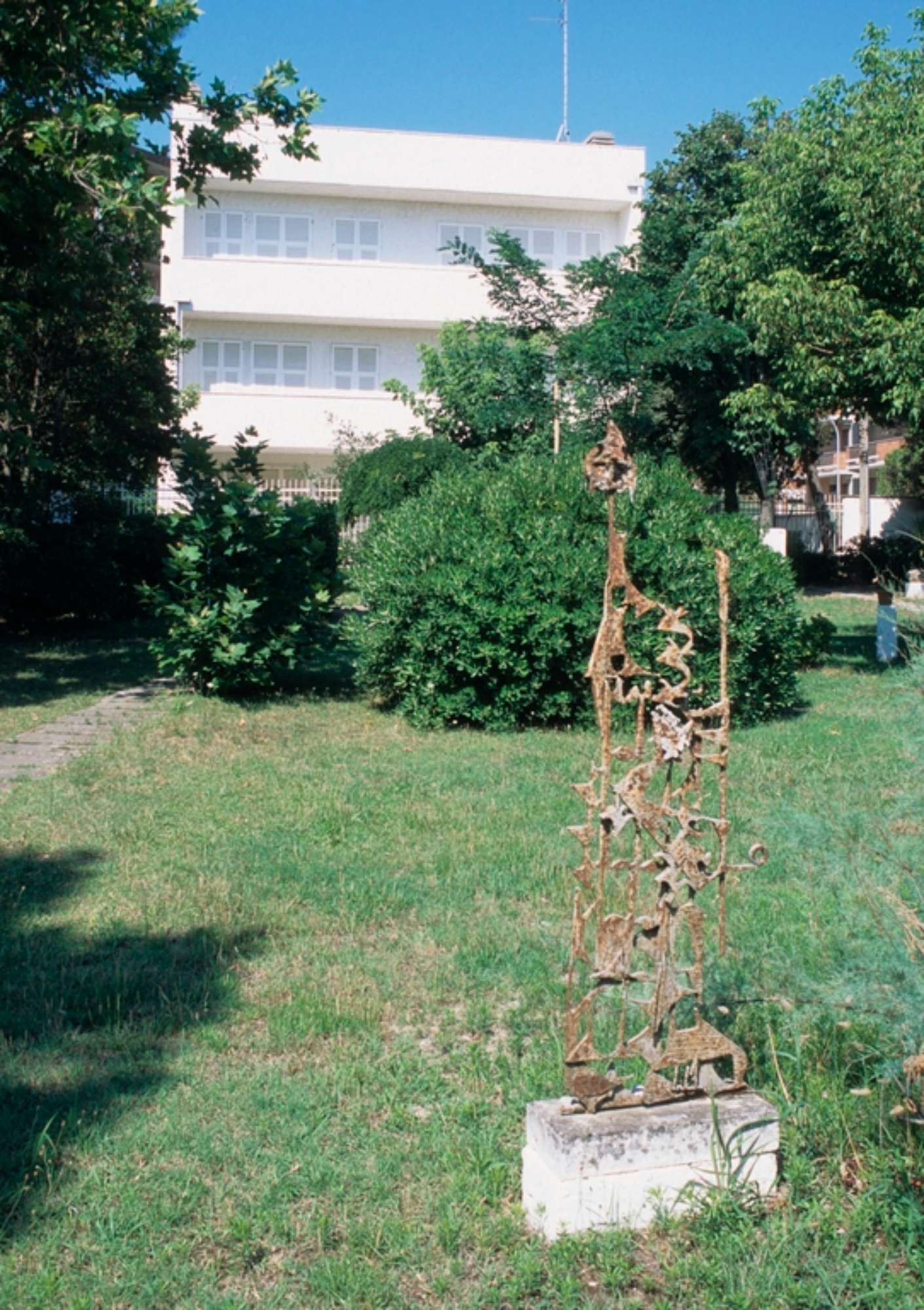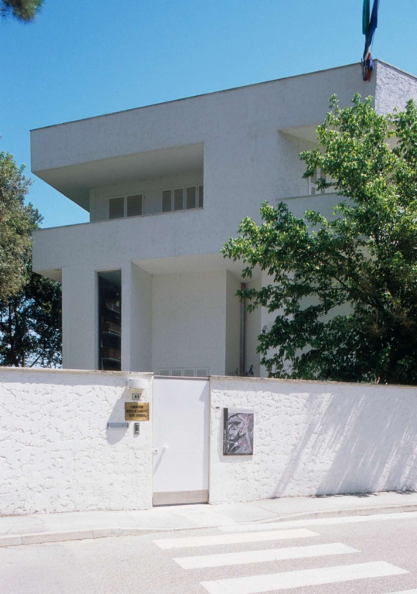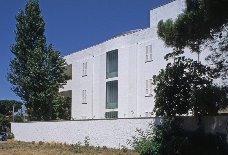 Inaugurato il 28 luglio 1973 il “Museo Alternativo Remo Brindisi” a Lido di Spina fu progettato da Nanda Vigo per contenere la ricca collezione d’arte dell’artista e, contemporaneamente, per essere una casa di vacanza. Brindisi ebbe occasione di visitare Lido di Spina nel 1963 reputando il luogo adatto ad ospitare la sede della sua collezione che da tempo aveva in animo di sistemare in modo definitivo. La costruzione, al cui progetto partecipò attivamente anche lo stesso Brindisi, si articola attorno ad uno spazio circolare alto quanto la costruzione: al suo interno e lungo la scala che si appoggia sul perimetro sono collocate una parte della collezione. Il piano terreno della costruzione è dedicato principalmente all’esposizione delle opere mentre nei due superiori (e nel seminterrato) si articolavano gli spazi maggiormente privati. L’edificio è attenuto dalla compenetrazione del cilindro centrale con un parallelepipedo scavato da profonde logge: di colore bianco nell’intonaco degli esterni e negli estesi rivestimenti in piastrelle che coprono le pareti e i pavimenti interni – e parte di quelli esterni – i volumi nei quali sono ritagliate ampie aperture risaltano tra la fitta vegetazione dell’ampio giardino.