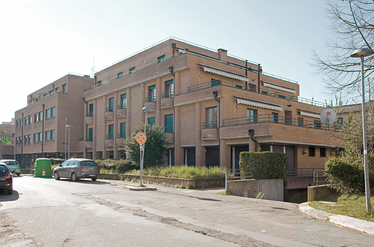 Con un profilo planimetrico gradonato l’edificio segue l’allineamento stradale disponendosi come un corpo continuo arretrato rispetto alla via dalla quale è separato da un filare di alberi e da un sottoviale con parcheggi; analogamente, in alzato, lo stesso andamento gradonato caratterizza l’andamento dei volumi.