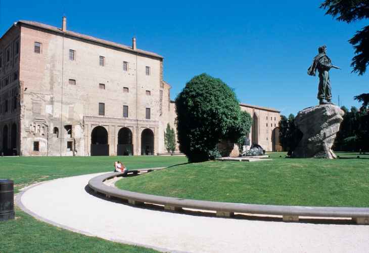 A nord si ha il pronao che introduce alla scalinata che su due lati convoglia all'aula assembleare a primo piano.