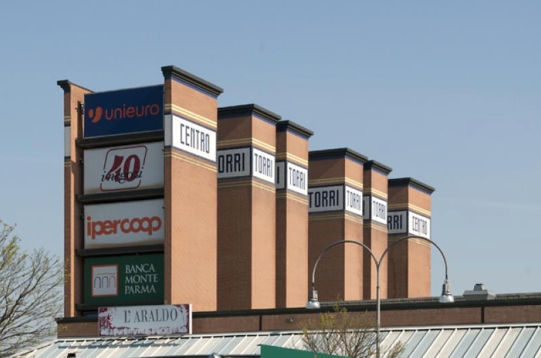 Il centro prende proprio il nome dalla tipologia usata per realizzare il complesso il cui stesso nome sottolinea il carattere dell’edificio come fanno le scritte sui municipi o sui teatri. Aldo Rossi definisce il centro come un progetto “felice”, caratterizzato da un uso sapiente dei materiali come il mattone e la ceramica, tipici della zona parmense, ad esempio nelle Terme di Salsomaggiore. Il centro commerciale è dotato di un ampio parcheggio sul retro e di una galleria interna con copertura a falde molto spioventi e illuminazione proveniente dall’alto. La luce solare però non entra da una copertura vetrata, ma da una fessura tagliata proprio all’imposta della copertura.