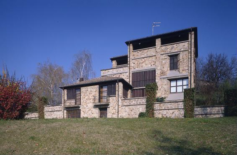 La costruzione della villa per giovani sposi a Langhirano, segue l’analoga sperimentazione nell’uso della pietra, della precedente casa di Casarola (per Attilio B.).
