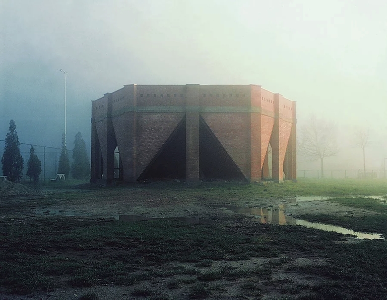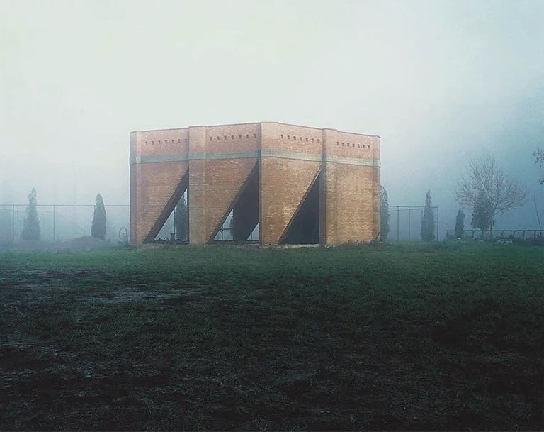 La nebbia, scesa ad avvolgere il corpo del manufatto ancora fresco, che Ghirri ha voluto fissare nel momento del suo magico alternarsi al sole, è un elemento naturale a questo quadro, privo di forzature. Scende, per sei mesi all'anno, quasi ogni pomeriggio: proprio perché elemento (come l'acqua o la terra) la nebbia segna l'appartenenza.