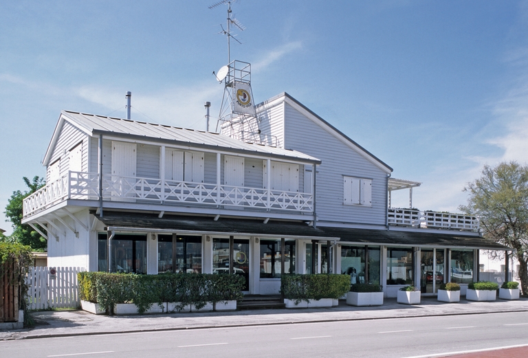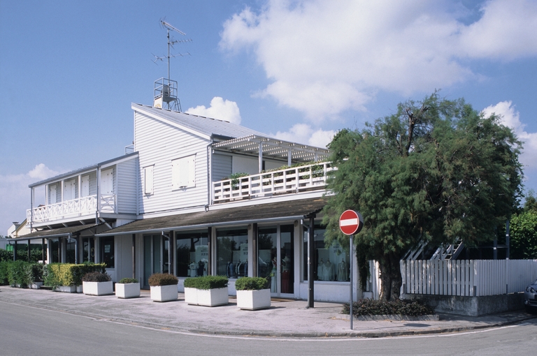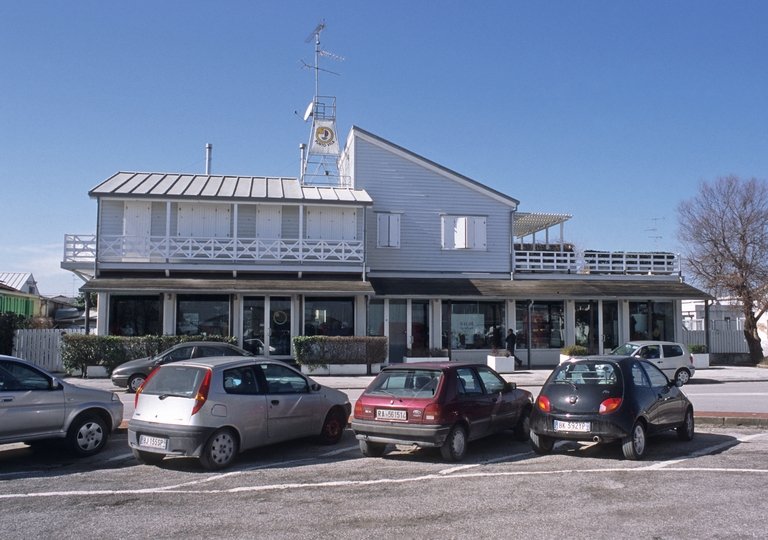L'edificio, commissionato nel 1984 da Punto Vela srl, nasce come negozio di nautica con annessa foresteria al primo piano. In legno nei colori pastello grigio-azzurro, bianco e legno naturale, sè concepito come l'unione di due corpi aggregati, uno con tetto a due falde spioventi e uno più mosso: un elemento cubico con tetto spiovente e un grande terrazzo con balconata in legno bianco, unito al ballatoio del primo corpo. il piano terra, senza soluzione di continuità, è occupato dal negozio con vetrine riparate da una veranda in legno naturale.
