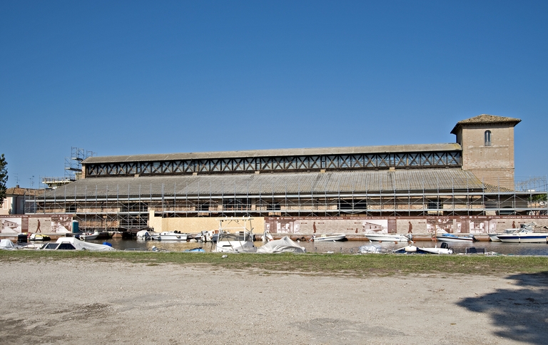 Del progetto dell’arch. De Carlo è stata realizzata, fra il 1983 ed il 1987, la riqualificazione dell'interno. Alla struttura modulare della fabbrica costituita da pareti trasversali e da arcate che suddividono il magazzino longitudinalmente in tre corridoi, è stata sovrapposta un’imponente struttura in ferro e cemento costituita da soppalchi a più livelli. Si arriva all’altezza massima delle navate e si può passeggiare nel punto più elevato dell’edificio e ciò permette di guardare il porto canale e il mare. Il progettista ha pensato il nuovo intervento per il riuso dell’antica Darsena, confermando così la tradizionale cultura marinara di Cervia. L’acqua è il “genius loci” e viene fatta entrare nel magazzino occupandone due ante per costituire un punto d’approdo, una darsena interna alla città. Nella foresta di pilastri in cemento e tubi in ferro ci sono le scale. Il magazzino così trasformato resta sempre vuoto. In un intervista Vittorio Ciocca, Sindaco di Cervia fino al 1988 chiarisce: “Il “Progetto Cervia”… si articolava su quattro cardini: 1) il recupero degli antichi magazzini del sale; 2) l’incremento dei posti barca con il rifacimento delle banchine del tratto di porto-canale fra il ponte Delle Paratoie e il ponte Mazzini e della vecchia Darsena previa sostituzione del ponte fisso con un ponte mobile; 3) la completa ristrutturazione della piazza del Mercato con la realizzazione di una nuova darsena; 4) un laboratorio per il recupero del quadrilatero occupato in prevalenza dalle case dei salinari e il rifacimento delle pavimentazioni e degli arredi del centro storico.”