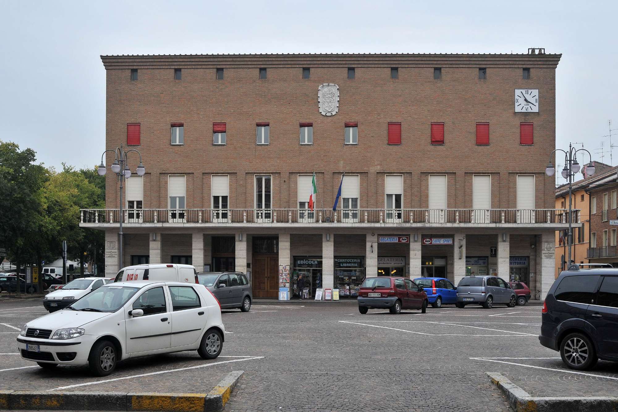 La ricostruzione del Municipio vede coinvolti Giuseppe Vaccaro e Bruno Parolini, che pochi anni prima avevano affrontato lo stessa tema nell’intervento sul palazzo del Comune nel vicino centro di Alfonsine.