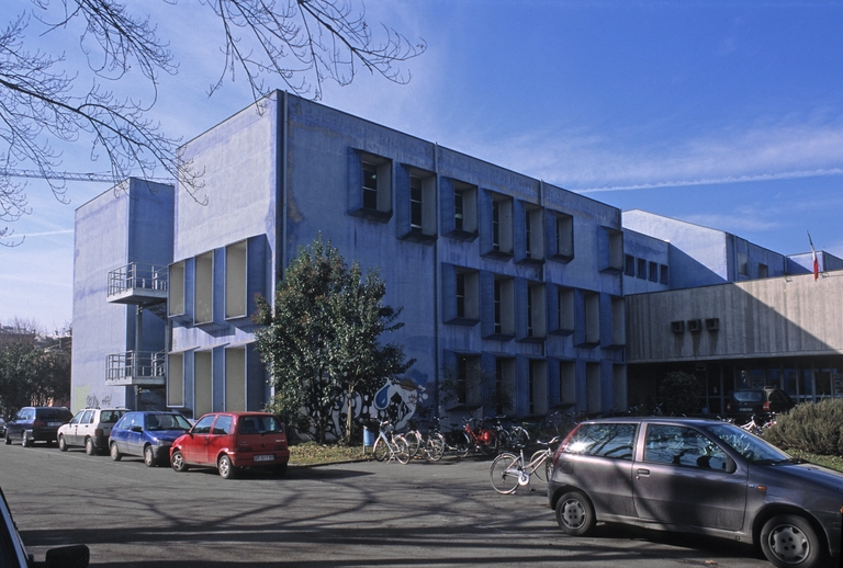 Il nuovo istituto tecnico si mostra pertanto come un’architettura volutamente, astorica: non c'è basamento, né coronamento, né alcuna interpretazione moderna a modelli o sistemi compositivi del passato. I blocchi edilizi sono scatole appoggiate direttamente al suolo senza alcuna mediazione; la volumetria si compone sagomando i profili dell'edificio in spessore e assemblando volumi puri, operazione imposta come unico tema compositivo, reiterato a creare le diverse situazioni spaziali.