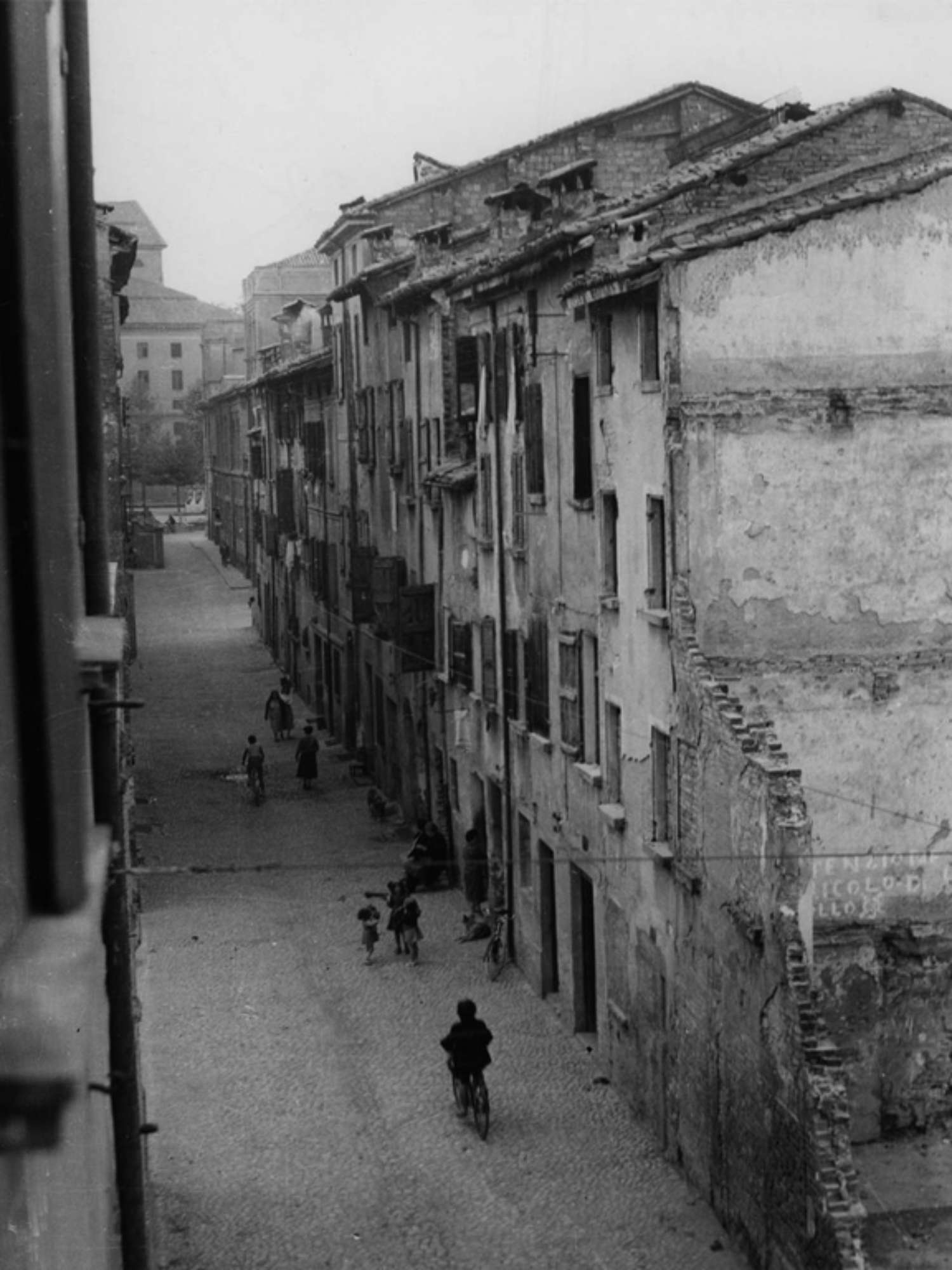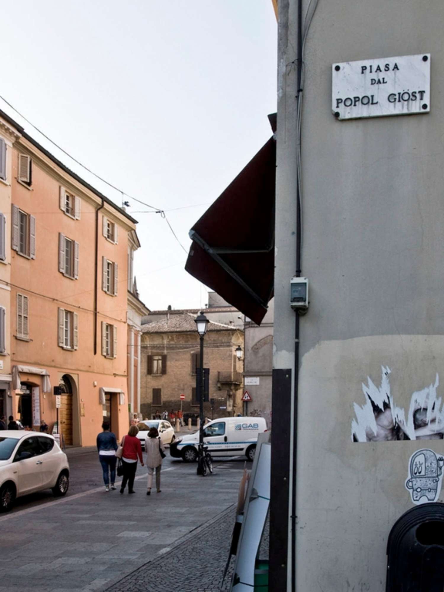 Fra queste vie si aprivano vicoli, passaggi nascosti, osterie, bordelli e piccoli negozi che brulicavano dei suoi abitanti. Era il cosiddetto “Popol giost” (popolo giusto), ricordato oggi nella piazzetta adiacente a via Roma. Non un semplice rione, ma un vero e proprio popolo, quasi fisicamente separato dal resto della città, con addirittura un suo gergo particolare, una sorta di dialetto parlato al contrario, praticamente incomprensibile a chiunque venisse da fuori e soprattutto alle guardie, come il Verlan ("l'inverso") parlato nelle periferie francesi. (Fonte: Livello 9 Musei dei luoghi di Reggio Emilia)