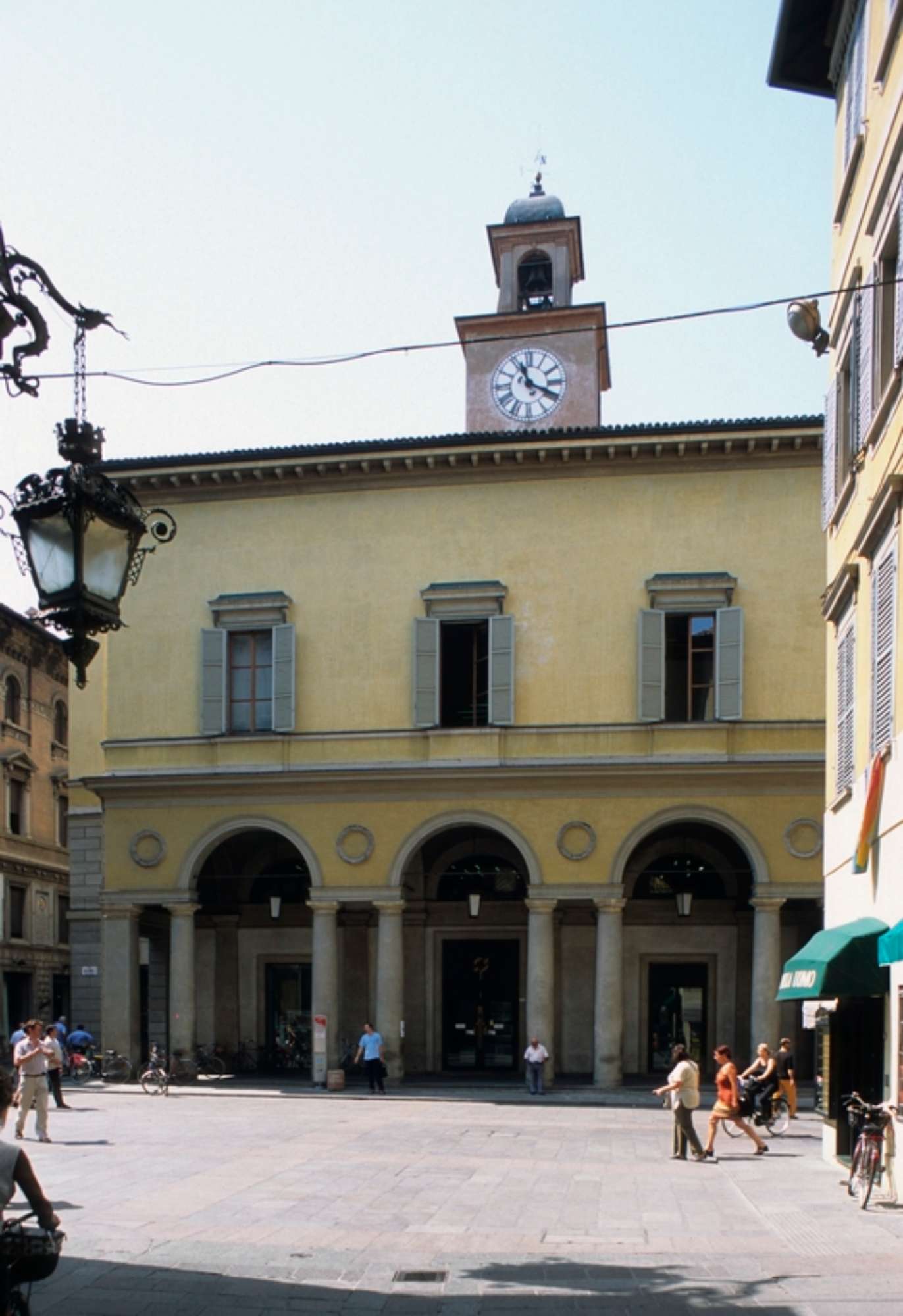Il Palazzo ex Monte costituisce uno dei più significativi edifici storici della città. Originario del XII sec., la sua collocazione intermedia tra due piazze, svolge un ruolo fondamentale nella definizione morfologica della parte urbana più antica e per questa ragione le due facciate principali sono risolte in maniera stilisticamente differenziata. Il progetto di restauro dell’edificio, nella soluzione del trattamento cromatico delle facciate, coglie questa diversità formale, usando colori diversi su ogni prospetto. (Zanichelli).