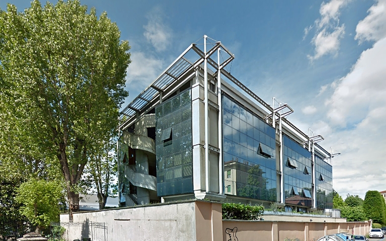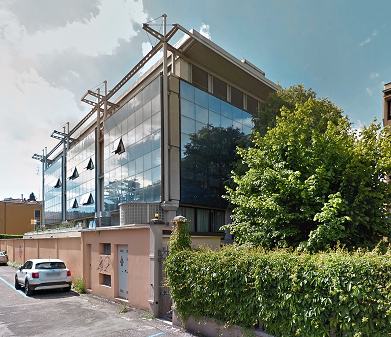 Rendendosi necessario un ampliamento di alcuni spazi che si trovavano negli uffici studi esistenti in seguito all’aumento delle attività produttive, nel 1990 l’azienda, che opera nel campo della moda, ha deciso di costruire un nuovo edificio polifunzionale su quattro piani come il precedente per una superficie utile di 2400 mq ristrutturando un edificio esistente. Su esplicita richiesta della committenza è stata scelta una nuova soluzione formale che fosse in sintonia con i nuovi linguaggi architettonici. Il primo problema da risolvere che si è posto per le superfici trasparenti è stato quello di ottenere la perfetta restituzione dei colori all’interno degli ambienti, esigenza primaria per un’azienda che lavora tessuti e modelli. Il secondo è stato quello di raggiungere condizioni di microclima interno adatte alla permanenza delle persone, con particolare attenzione ai requisiti del benessere termigrometrico relativi al contenimento delle dispersioni e al controllo dell’immissione diretta dell’irraggiamento calorico solare, nel rispetto delle esigenze di una efficace illuminazione naturale. Ne è scaturito un progetto con ampie superfici vetrate per i due piani di uffici e una copertura metallica per il terzo piano. Dal punto di vista delle innovazioni tecnologiche sono da sottolineare, oltre la particolarità delle vetrate, la struttura di copertura realizzata in carpenteria metallica con travi e campate di 17 metri, la facciata vetrata messa in opera con sistema strutturale, il lucernario dello show-room lungo 21 metri e largo m 2.5, il sistema di comando completamente automatizzato delle tende esterne, compresa nello show-room, e infine il sofisticato impianto di condizionamento realizzato mediante la regolazione della temperatura facciata per facciata, in modo tale da assicurare uno standard abitativo di completo comfort. Attualmente nell’edificio è ospitata l’agenzia del territorio.