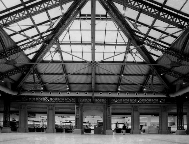La struttura della copertura vuole ricordare le caratteristiche delle strutture metalliche di fine ottocento, con riferimento all’aspetto tardo-liberty delle finiture – modanature, capitelli, inferriate – dell’esistente. Questa scelta architettonica garantisce allo spazio interno una abbondante illuminazione diurna naturale.