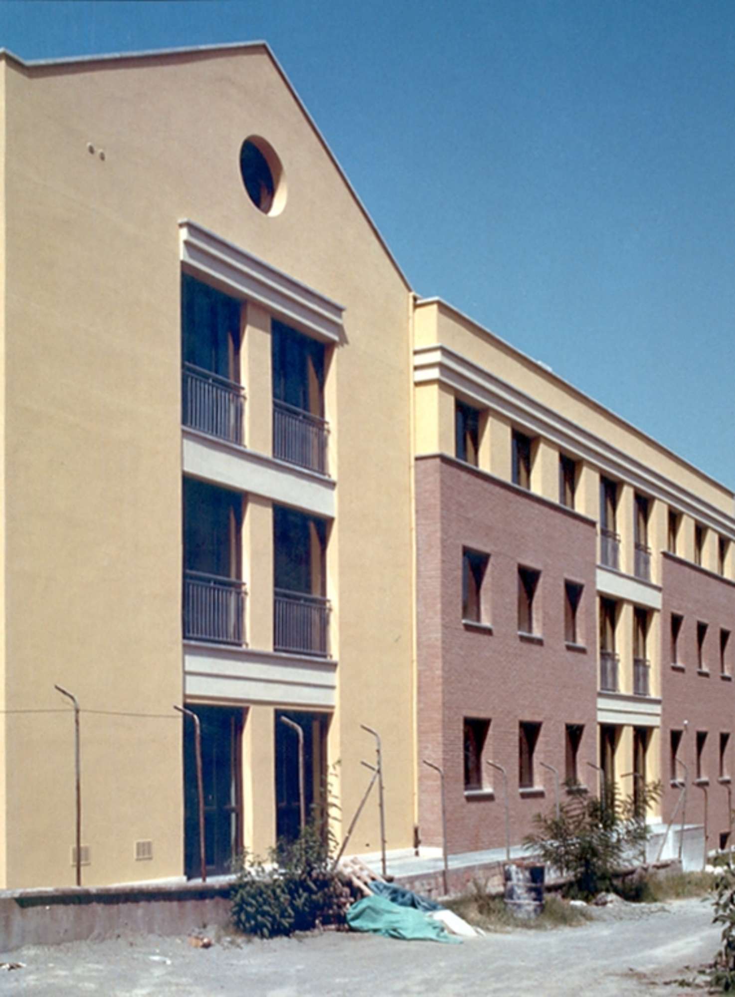 Diversamente i fabbricati su corso Vallisneri sono interamente intonacati, vi è un graduale aumento delle parti in mattone a vista nel passaggio dalla corte interna al fronte su via XXV Aprile.