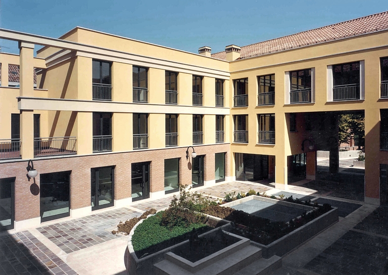 Il sistema delle corti e degli androni che le uniscono genera un percorso che diventa l’elemento centrale del progetto, in cui si esplica la forte valenza urbana di tutto l’intervento. Il progetto, pensato per il recupero funzionale e formale di un brano di città degradato, supera la logica del recupero edilizio, per proporre un impianto che dialoghi con il tessuto storico e che sia ad esso completamente organico garantendo così il rispetto del valore storico del costruito e la qualità degli spazi aperti.