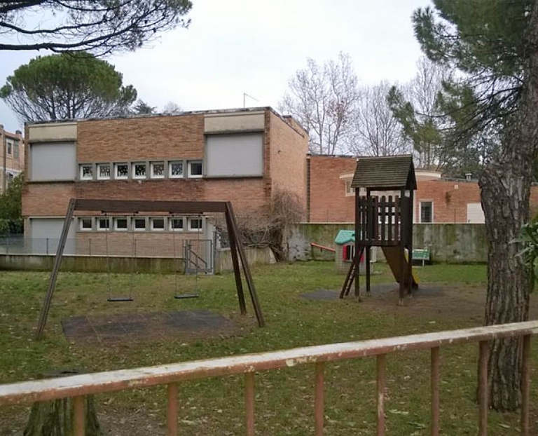 Il centro sociale nasce come servizio al quartiere INA Casa “Campana”, progettato all’inizio del secondo settennato del piano Fanfani da P.M. Lugli, coordinatore di un gruppo a cui appartiene, tra gli altri, l’architetto romano Sergio Lenci che si occupa della progettazione ed esecuzione dell’edificio. Il centro sociale è situato in posizione baricentrica, all’interno di una delle aree verdi previste nel cuore del complesso residenziale, impostato su una planimetria a ventaglio simmetrica. Il fabbricato rappresenta, come sottolinea A. Samonà, un esempio dell’integrazione casa-servizi perseguita dai quartieri Ina-Casa e non sempre realizzata.
