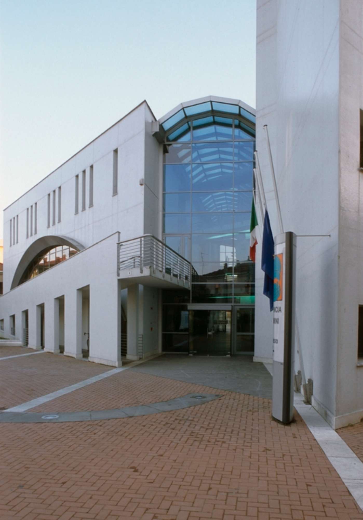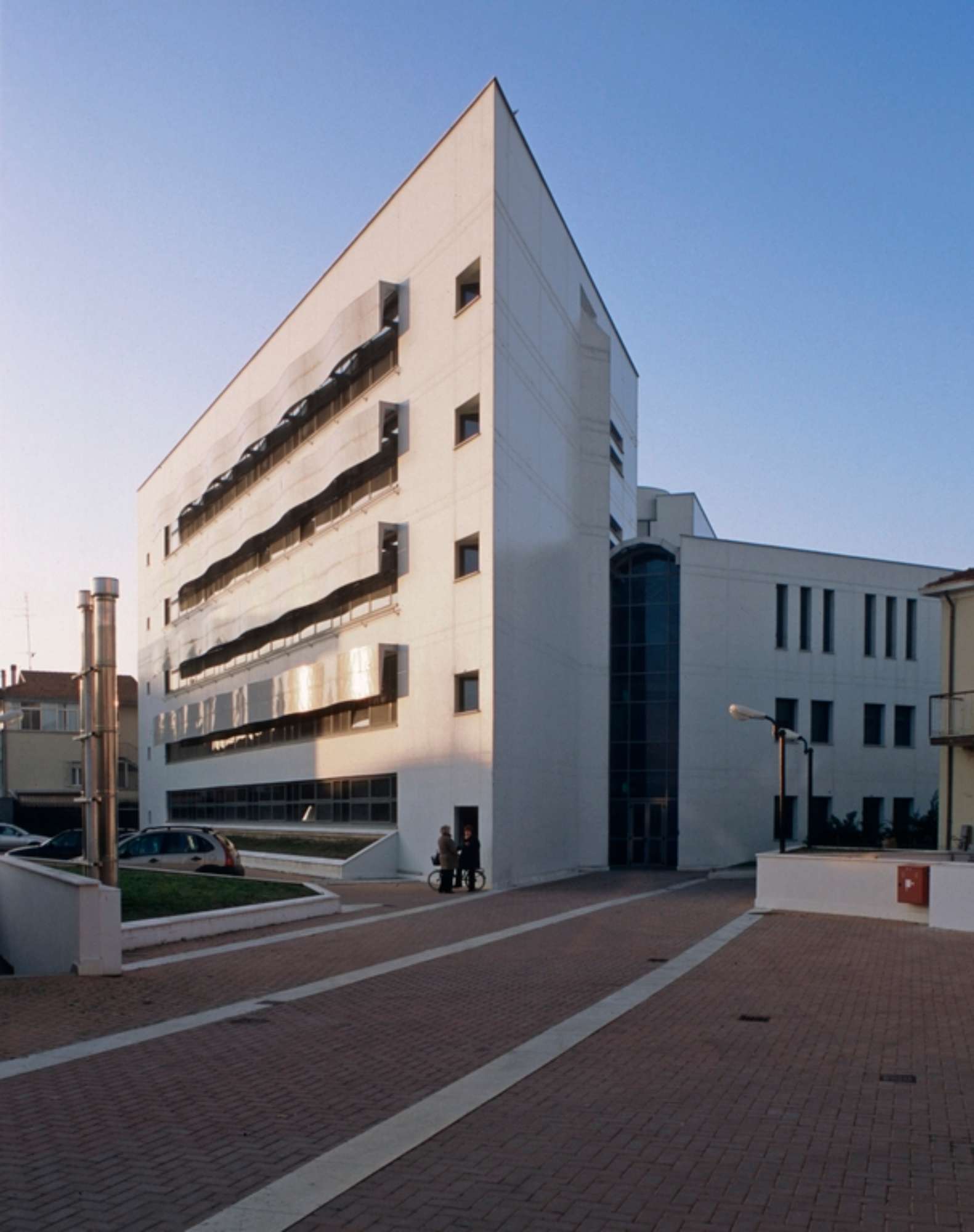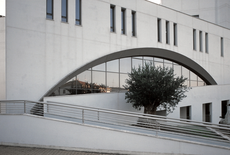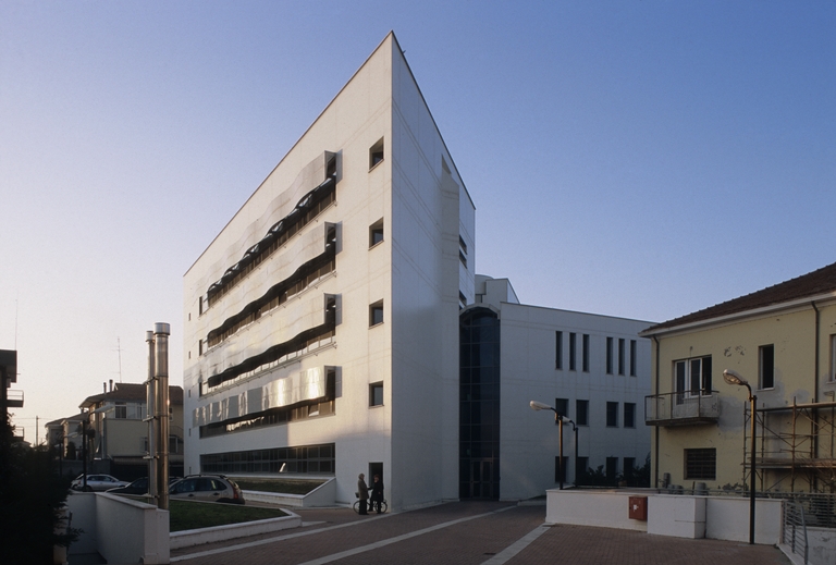 La nuova sede dell'amministrazione provinciale di Rimini si presenta come edificio composto di due corpi di fabbrica a pianta triangolare uniti da una galleria vetrata che connota l'opera, insieme alla pulizia delle pareti bianche con aperture e vetrate e le fasce ondulate che segnano e riparano le fasce finestrate in tre ordini sullla parete lunga.