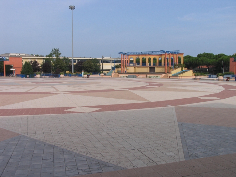 Nel 2000 la piazza si completa con il palco per gli spettacoli all'aperto.