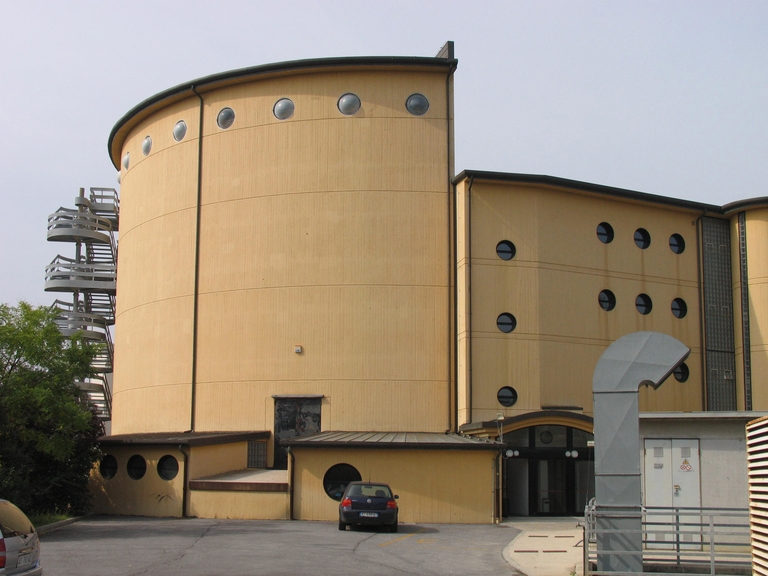 Il centro culturale, pertanto, si conforma secondo una pianta circolare attorniato per tre-quarti da una costruzione bassa, a forma di hangar ricurvo, dalla copertura ad arco ribassato, sulla quale s’innestano edifici multifunzionali. Sulla cavea, raccordati da un porticato, spiccano i volumi del teatro detto “della Regina” e della torre che racchiude vari servizi. Il primo edificio a essere completato è il centro multimediale, pensato anche come corpo di ingresso di tutto il settore culturale sviluppato all'interno dell'hangar per 1600 mq complessivi.