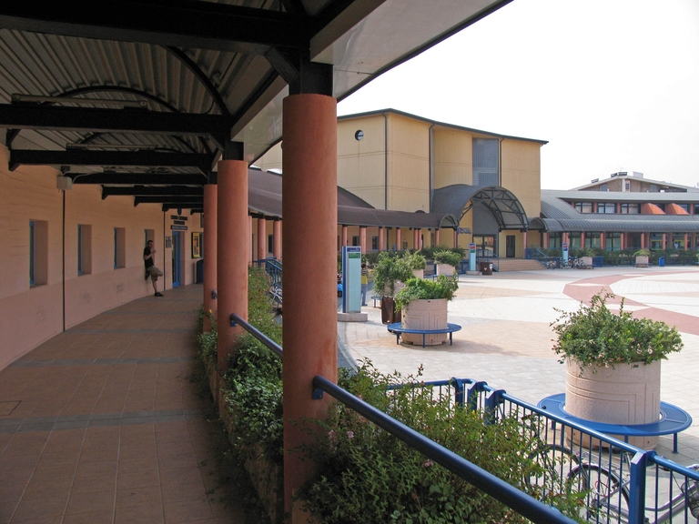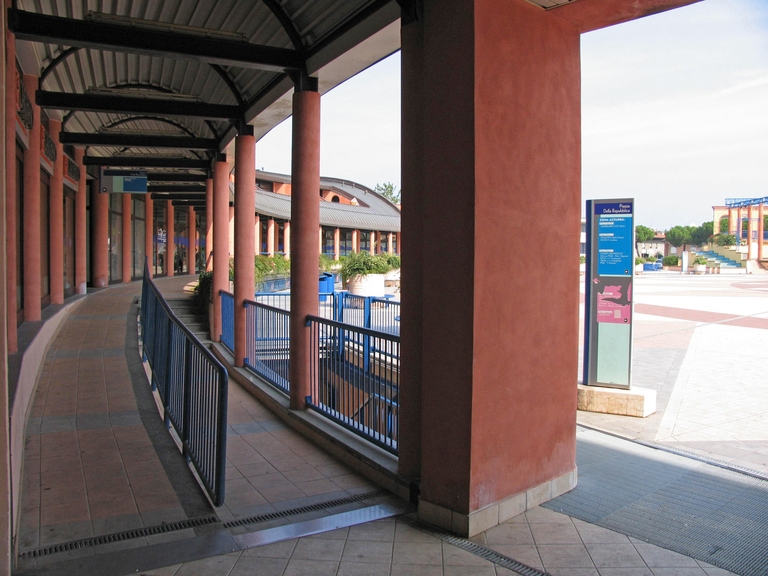 L'architetto decide d'intervenire in questo comparto, poco lontano dal centro storico cittadino, caratterizzando la nuova piazza con una forma inusuale rispetto al tessuto urbano consolidato. Il tema sviluppato partendo dall'antico concetto di agorà, vuole conciliare l'immagine tradizionale di luogo d'incontro e scambio con la modernità delle scelte architettoniche adottate.