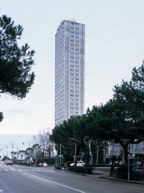 Interessato alle esperienze americane della Scuola di Chicago, in particolare alle architetture di Louis Sullivan e alle teorie lecorbuseriane dell’Unitè d’Habitation, è motivato a lasciare un’impronta sul territorio. Questo approccio lo porta ad affrontare il tema dell’edificio alto e a fondare nei primi anni Cinquanta, a Faenza, la Società Immobiliare Marinella – tuttora attiva. Negli anni del boom edilizio della riviera, la SIM si pone come strumento pioneristico per realizzare progetti di grattacieli, inusuali per la Romagna, che si presentano come valide sperimentazioni. Realizza quindi diverse “architetture verticali” di Milano Marittima e di Cesenatico. Quest’ultima, terminata nel 1958, è un segno identitario della località balneare, e con i suoi 118 metri di altezza resta il grattacielo più alto d'Italia fino al 1960, anno di completamento del Grattacielo Pirelli di Milano. Attualmente è il 17° grattacielo più alto d'Italia, e ancora oggi uno degli edifici in cemento armato più alti.