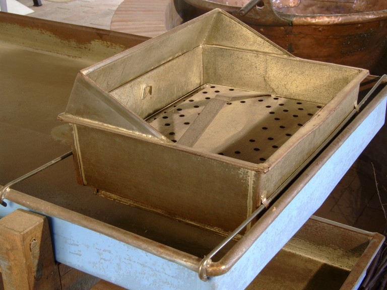 Il latte doveva essere filtrato due volte. Una prima al momento della riempitura dei bidoni in stalla, e una seconda all'arrivo in caseificio, dopo la pesatura, nel versarlo nelle vasche e bacinelle d'affioramento. Il filtro rettangolare era applicato al bordo delle vasche e vi si versava dentro il latte.