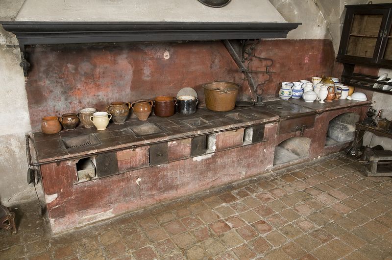 P. Scheuermeier (Il lavoro dei contadini, vol II, p. 65) ha illustrato il funzionamento di simili dispositivi e i vantaggi arrecati dalla loro introduzione: "Attraverso una griglia metallica, la cenere della carbonella cade in un vano sottostante, la cui parete anteriore è sempre aperta in maniera da poter creare un forte tiraggio, specie con l'aiuto della ventola; […] L'effetto del calore è molto più forte e il funzionamento più economico che nel grande camino contadino; […] nelle famiglie contadine e nelle osterie viene usato quando si devono cuocere in poco tempo piccole quantità di cibo".