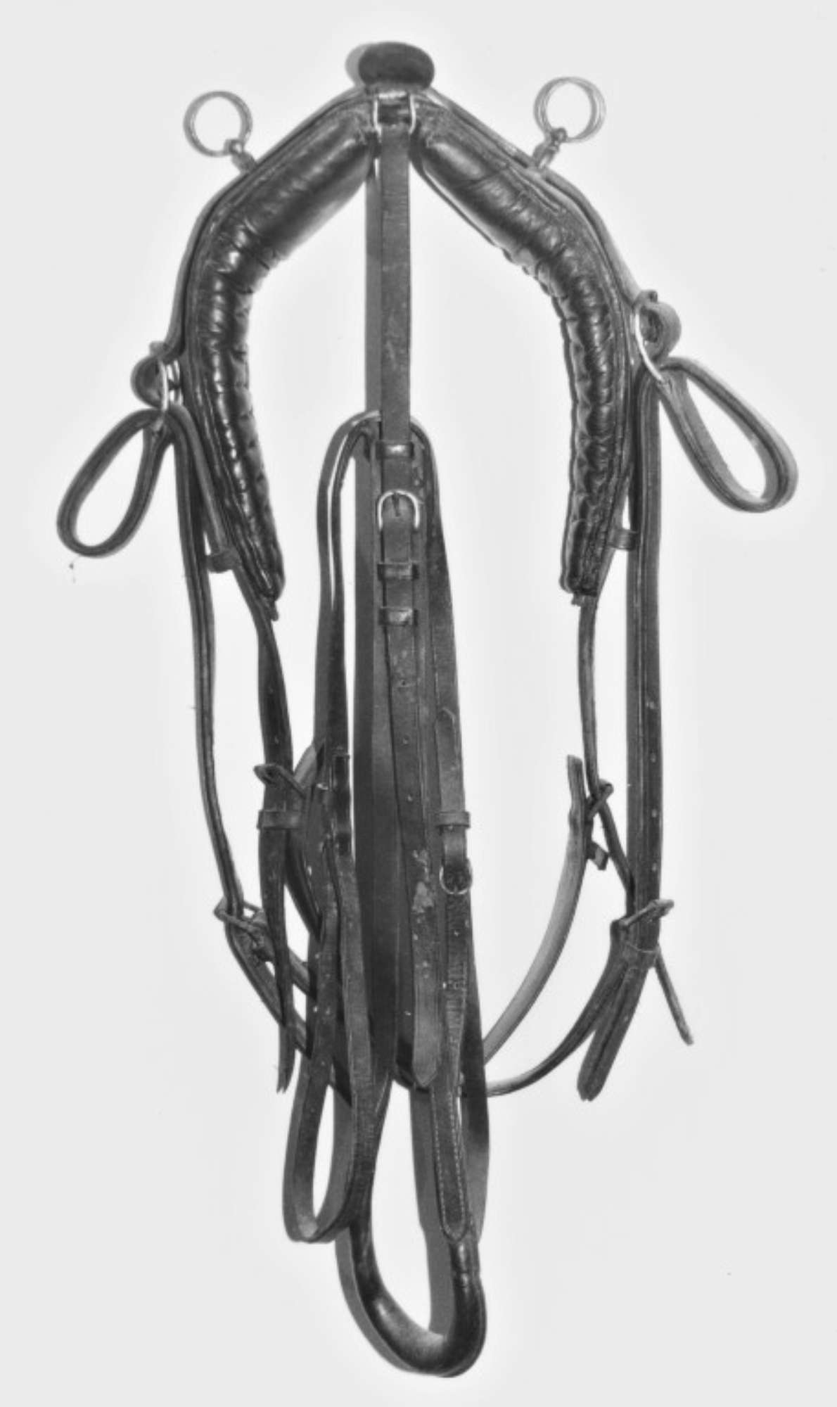Il collare in cuoio ha forma ogivale. All'interno sono cuciti due grandi cuscini trapuntati, anch'essi in cuoio. Il sottopancia è costituito da due lunghe strisce in cuoio, che partono dalle due estremità del collare e sono congiunte ad una terza da due fibbie di regolazione in ottone. Il sottopetto è formato da due strisce in cuoio unite con fissanti in ottone, muniti di occhielli per il passaggio delle briglie, alla parte superiore del collare, e cucite per circa dieci centimetri. Queste due strisce sono congiunte ad una terza tramite due fibbie di regolazione in ottone.