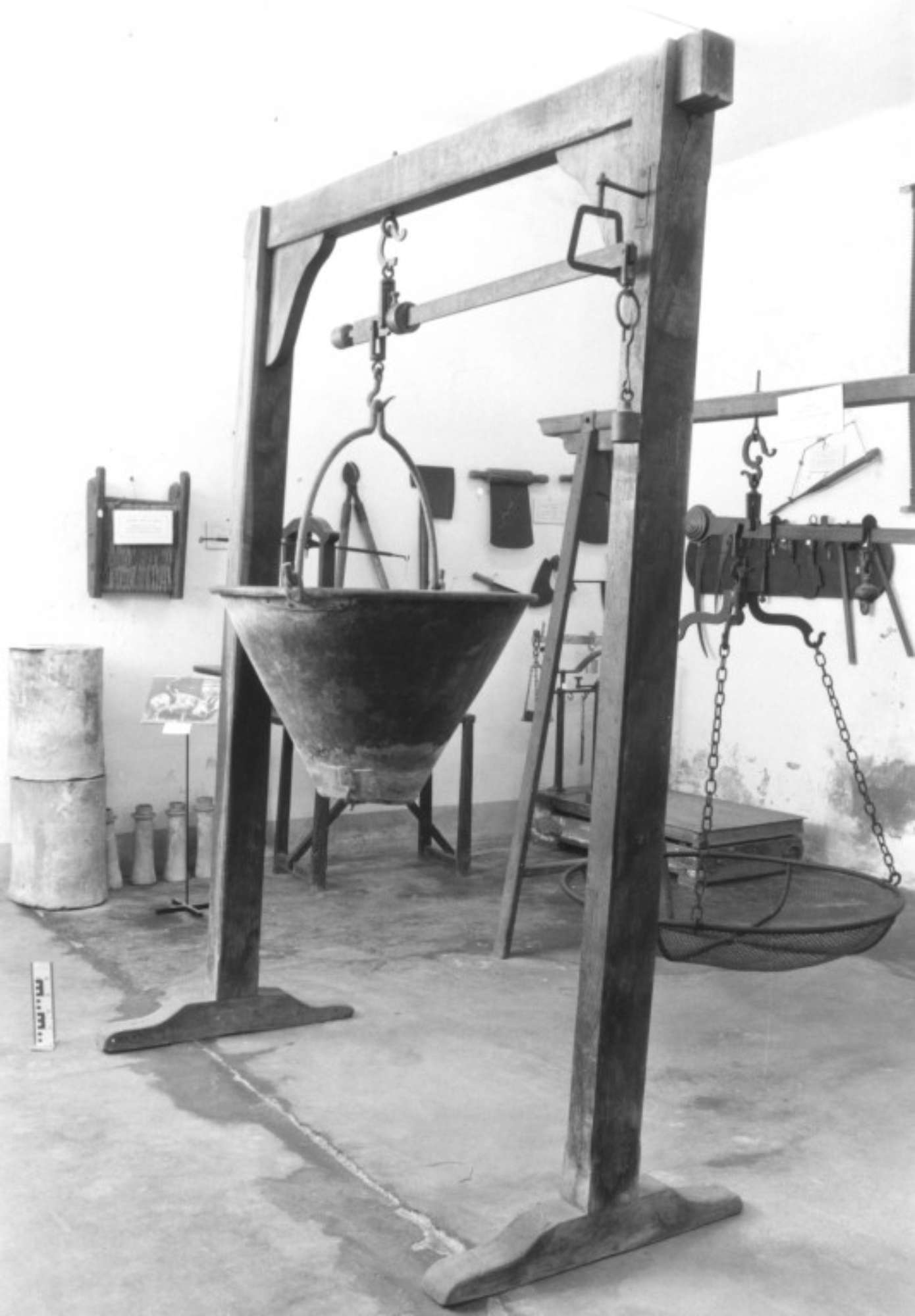 Un imponente telaio rettangolare in rovere sorregge, per mezzo di un anello in ferro e di un grande gancio, la bilancia a stadera. Questa è costituita da un lungo braccio al quale è sospeso il grande secchio nel quale veniva versato il sale. All'altra estremità del braccio, sul quale sono incise le tacche per la misurazione e scorre l'indicatore del peso di forma rettangolare, è sospeso un piccolo peso cilindrico. Perché il braccio resti orizzontale questa estremità è sostenuta da un riquadro in ferro fissato alla traversa del telaio.