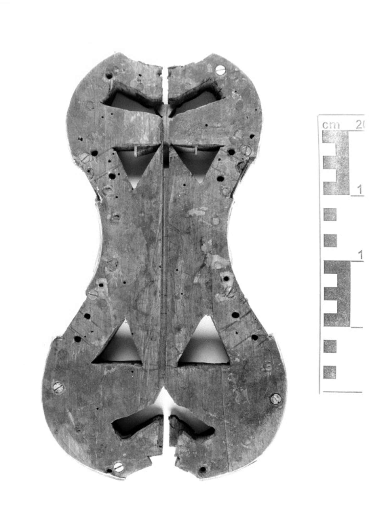 Funzione: come modello per ricavare il contorno del violino; su di essa inoltre si piegano le fasce, si incollato, si applicano le controfasce e si incolla il fondo.