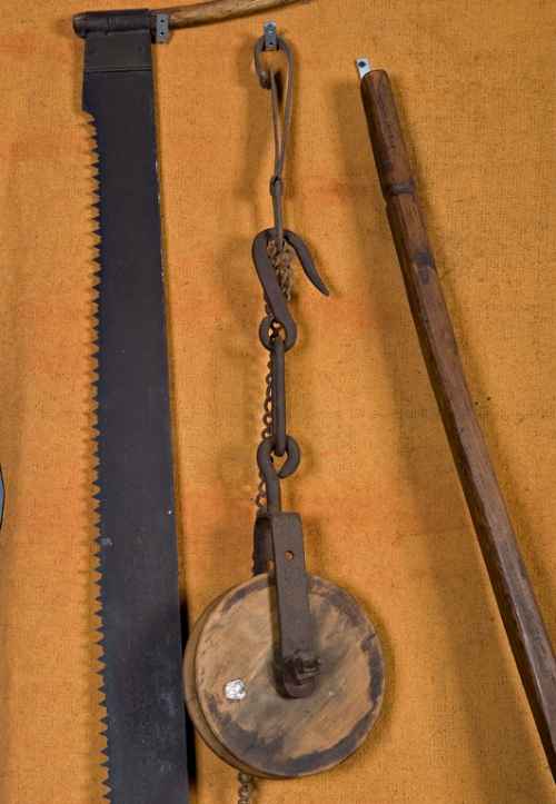 Funzione: per appendere, sollevare il maiale in quanto molto pesante, e per far scolare il sangue