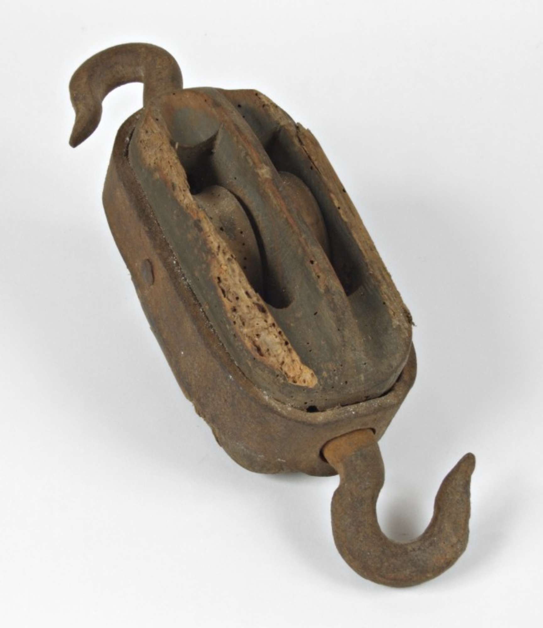 carrucola in legno, composta da un corpo alle cui due estremità sono agganciati due ganci in ferro, e dove vengono alloggiate due pulegge sempre in legno
