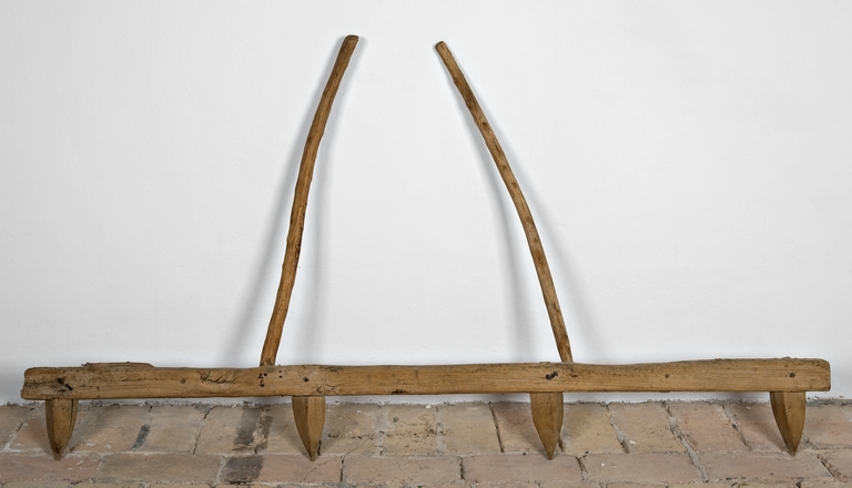 Questo particolare tipo di erpice, veniva trainato a mano e da animali, con i denti rivolti sul terreno, ed utilizzato per piccoli appezzamenti, specie per rompere il manto erboso.