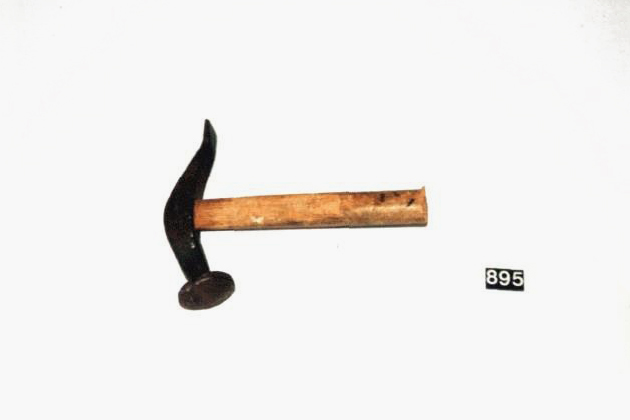 Il calzolaio impugnava il martello dal manico e tenendolo leggermente obliquo lasciava cadere la testa o la penna, rivolta verso il basso, sulla piccola superficie da battere o piantare. Ripeteva più volte il movimento.