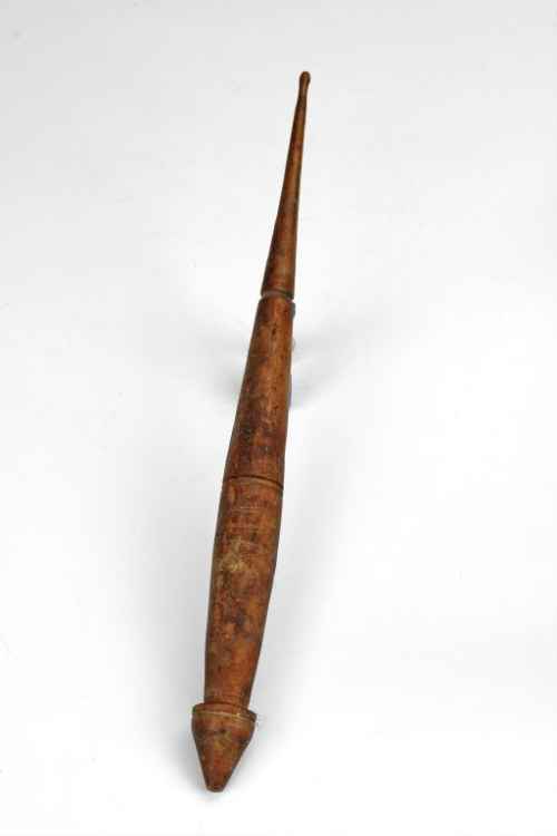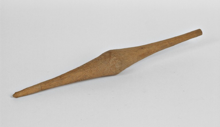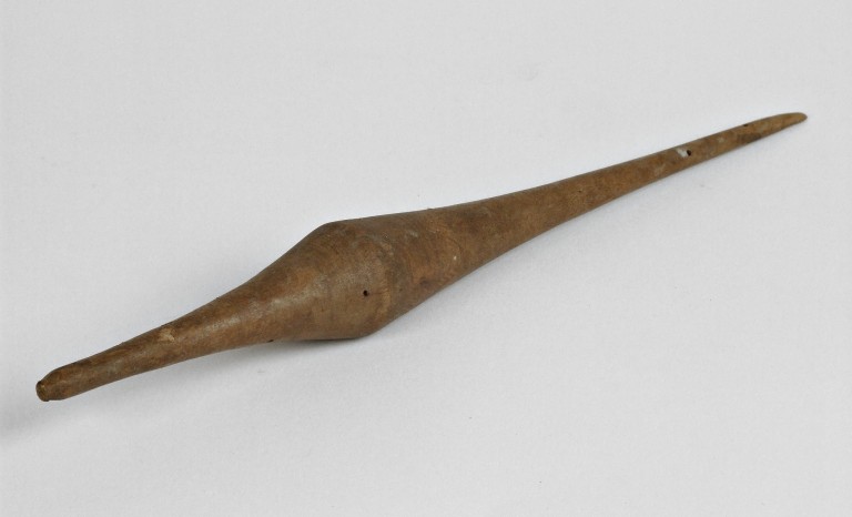 si usava nella filatura mediante la torsione del filo che si avvolgeva intorno al fuso. La filatrice tende dalla rocca (sk 114) tante fibre quante ne riesce a torcere con la punta delle dita, fino ad ottenere un filo, alla cui estremità il fuso viene tenuto dalla filatrice in continua rotazione, per torcere il filo più efficacemente; facendo girare il fuso su se stesso, afferrandolo per la punta superiore con il pollice, l'indice e il medio e imprimendogli un movimento vorticoso.