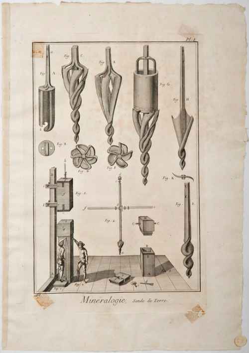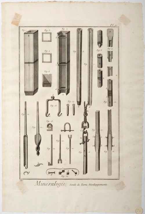 Si tratta di una della numerose tavole che illustrano l'Encyclopedie, o Dizionario ragionato delle scienze delle arti e dei mestieri a cura di Diderot e D'Alambert.